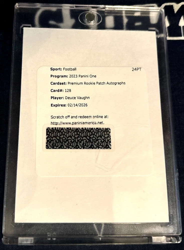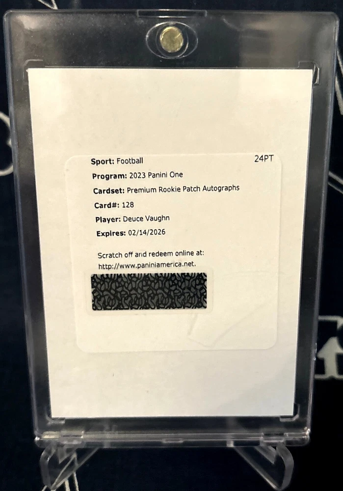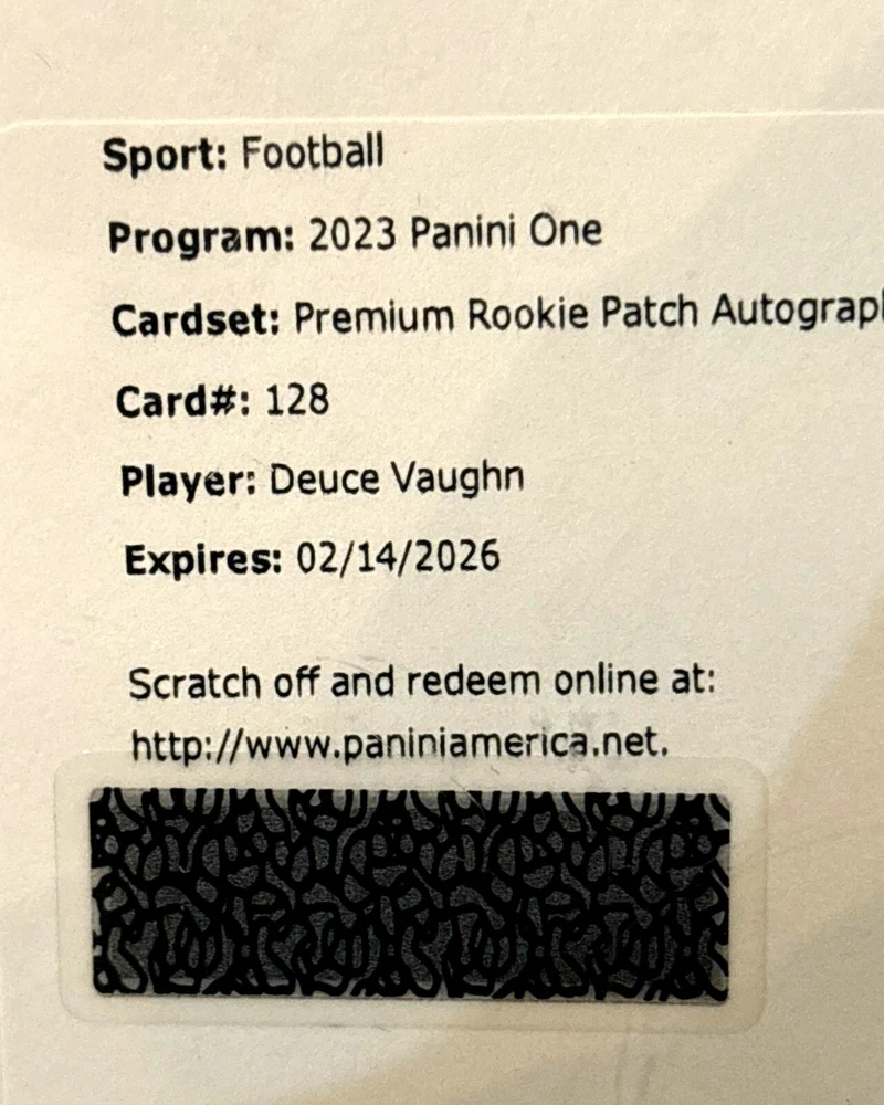 ************************************************************************************** You are bidding on: 2023 Panini ONE Football REMDEMPTION that will be a Factory Sealed ENCASED Rookie PREMIUM Autograph RPA Materials Dallas Cowboys DEUCE VAUGHN Certified Authentic Autograph AUTO and Certified Authentic Player Game Worn JERSEY PATCH Rookie RC #128 . Please, See picture because this is the card you will receive and what you are bidding on! ! ! THIS AUCTION IS ONLY FOR ITEM(S) DESCRIBED. ITEMS ARE AS IS . FREE SHIPPING AND CARDS UNDER $20.00 WILL NOT COME IN ONE TOUCH CASE. ALL OTHER IS CASE BY CASE. They will come in Top Loaders. PLEASE SEE PICTURE FOR CONDITION.YOU WILL RECEIVE ALL CARDS PICTURED. I am not a DEALER, I am collector, these are my extras, dups, and etc. I buy Collections, Packs, Lots, Boxes, and keep what I collect and then very year or two, I list the extras. These are Good /Near Mint/ Mint condition cards that come from all different sources and ways, that I break down into Individual player lots and Team lots. So please, check all my other auctions to find your favorite player or team. Theirs is a lot of Jerseys Cards, Inserts, Short printed cards, and etc. in these lots. I will be listing 100?s of auctions and with 1,000?s of card in them that you can set your own pricing for. I do try to make good lots. This in not my full time job, I do it on the side to fund my collection. Basically my lots range of card from 1970?s to 2016. My lots can have brands like: Topps, Panini Donruss, Topps Finest, SP Authentics, Press Pass, SPX, Panini Prizm, Press Pass Legends, Donruss, Gridirion Kings, Fleer, Fleer Premium, Topps Chrome, Topps Platinum, Panini, Score, Leaf Draft, Rookie & Stars Longevity, Bowman, Topps Strata, Absolute, Bowman Chrome, Leaf Certified, Quantum Leaf, Upperdeck, Upperdeck MVP, Playoff, Playoff Honors, Upperdeck Ovation, Crown Royale, Pacific, Pacific Omega, Ultra, edge, Upperdeck Stars, Press Pass SE, Upperdeck Football Heroes, Topps Total,Pinnacle, Collector?s Edge, Pro Set, Pro Line, Wild Card, Select, Pacific Prisms, Summitt, Upperdeck Collector?s Choice, Stadium Club, Fleer Metal, Sportflix, ProLine Classic, Totally Certified, Fleer Game Time, Flair, Topps Heritage, Donruss Elite, Bazooka, Pacific Paramount, Topps Legends, Playoff Contenders, Upperdeck NFL Artifacts, Fleer Authentix, Aurora, Upperdeck reflections, Donruss Threads, Topps Turkey red, Bowman Sterling, Bowman Best, Skybox, Skybox Impact, Topps Magic, Sage Hit, Threads, Prestige, and etc. Don't Miss Out On This Super Great Deal ! ! ! **************************************************************************** Great cards for your set or collection . **************************************************************************** NOTE: (Most of these cards are in "Good to Near Mint to Mint" condition) BUT: Some of these cards may have: S cuffing, printer specks, rough cut edges, missing pieces of cardboard, tiny pinch marks, dings, blisters, surface scratches, pin holes, wax stains, rough cut edges, fraying, rounded corners, tiny bend lines, may be off center, bowed & slightly warped, etc..... I do try to pick the best ones, I have to put into the lots ************************************************************** See check out all other football lots/items I have listed!!! Cards will be shipped via Priority Mail or First Class parcel post ( USPS ) with Tracking ! ! ! I do combine shipping. Due to increased USPS Fees you will pay for the price of most expensive shipping charge on auction you won and a additional $1.00 for each additional item/ auction you won. ************************************************************** To ensure you get reduced and combined shipping when eligible, please wait for or request an invoice directly through eBay. If shipping does not generate the shipping discount automatically after you have finished purchasing your items, please wait for me to send a combined invoice reflecting the correct shipping charge, as I do not want anyone paying too much for shipping. All items must be paid for on one payment to be eligible for shipping rate discount. eBay?s shipping calculator cannot properly calculate discount. *** A maximum of 40 items may be combined in the same shipment. Beginning with the 41st item, a new shipment will start. *** Thank you for viewing my items! ****************************************************************************** BE SURE TO LOOK AT ALL OF MY OTHER GREAT ITEMS I HAVE UP FOR BID OR FOR SALE ***************************************************************************** Will accept payments through PayPal and is prefered. You must have a confirmed address for PayPal. Checks and MO are always welcome. . PAYMENT IS DUE WITHIN 7 DAYS OF AUCTION ENDING, IF PAYMENT IS NOT RECEIVED I WILL RELIST AUCTION AND EBAY WILL BE CONTACTED. PLEASE - WHEN YOU BID ON THIS ITEM , BE SURE THAT YOU INTEND TO PAY FOR THIS ITEM ! AGAIN , THANK YOU ! & HAVE A GREAT DAY AND GOOD LUCK BIDDING ! *****************************************************