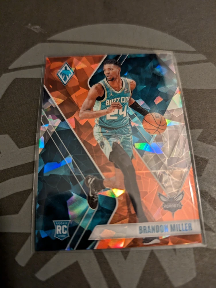 Parallel/Variety: Cracked Ice Sport: Basketball Season: 2023 Card Number: 249 Player/Athlete: Brandon Miller Type: Sports Trading Card Manufacturer: Panini Set: 2023 Panini Phoenix Features: Rookie Team: Charlotte Hornets Autographed: No
