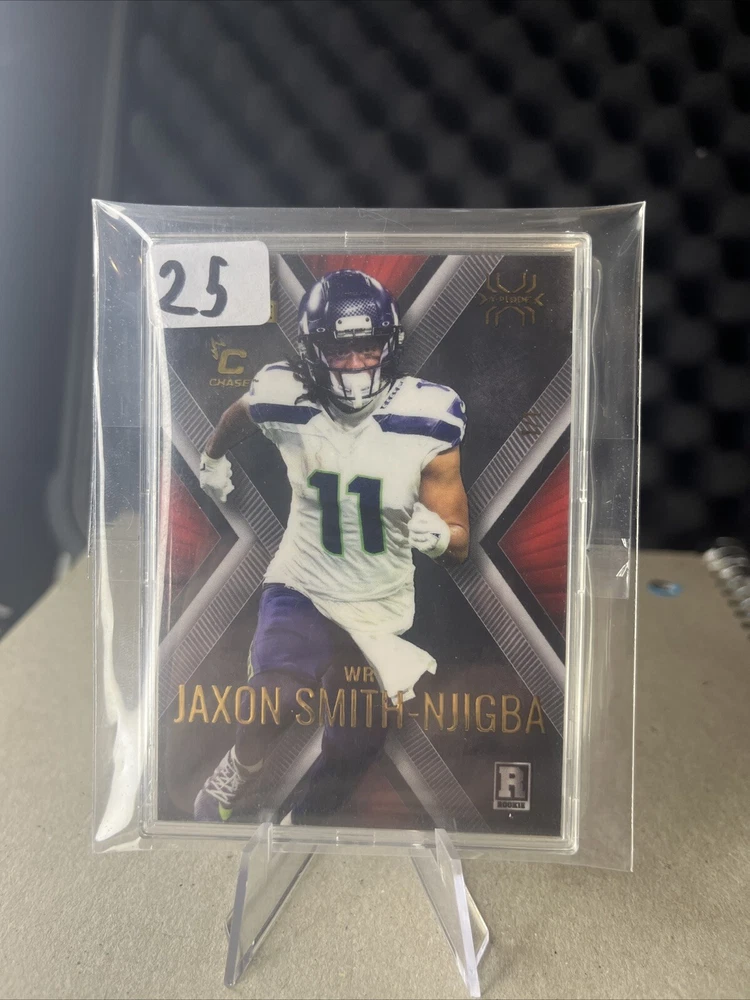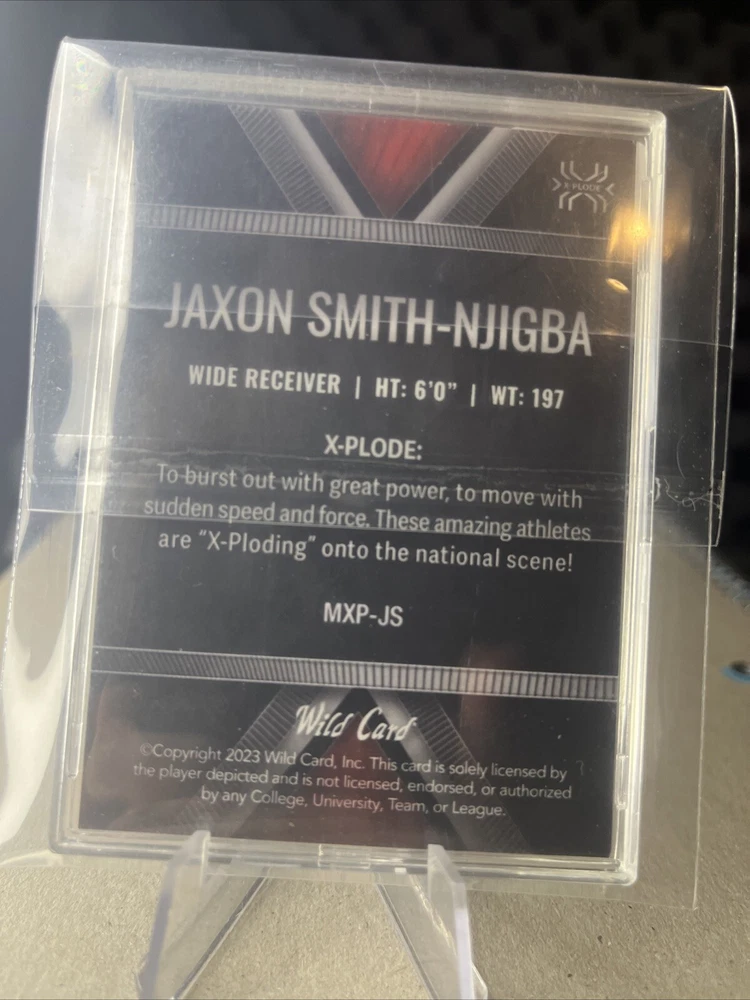 Card Number: RC6 Player/Athlete: Jaxon Smith-Njigba Insert Set: Rookies Parallel/Variety: Red Print Run: 1 Set: 2023 Panini Player of the Day Type: Sports Trading Card Sport: Football Season: 2023 League: National Football League (NFL), National Collegiate Athletic Association (NCAA) Features: Serial Numbered, Parallel/Variety, Rookie, Insert Manufacturer: Panini