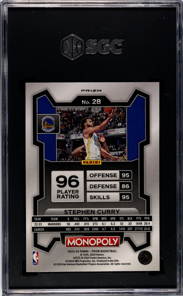 Feast your eyes on this exquisite gem: the 2023 Panini Prizm 28 Stephen Curry Monopoly GO card. This card is a symbol of excellence, meticulously graded an SGC 10 Gem Mint, indicating its absolute top-tier quality and condition. This card features the incomparable Stephen Curry, a living legend of the game, in his Golden State Warriors uniform. The card's vibrant colors and crystal-clear image quality make it a must-have for any serious collector. The Panini Prizm brand is synonymous with superior craftsmanship, and this card is no exception. It's a testament to their commitment to offering only the best sports memorabilia. The unique Monopoly GO edition further enhances its appeal, making it a rare find in the vast universe of sports cards. Whether you're a die-hard Stephen Curry fan, a dedicated Warriors supporter, or an avid sports card collector, this 2023 Panini Prizm 28 Stephen Curry Monopoly GO card is a valuable addition to any collection. Its SGC 10 Gem Mint rating ensures you're investing in a card of the highest quality. Don't miss out on the opportunity to own this piece of sports history!