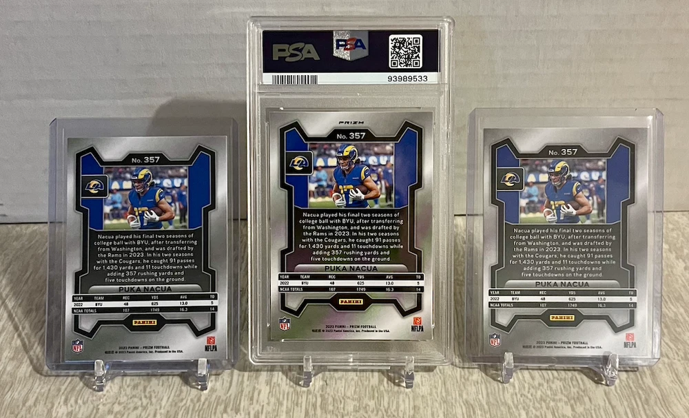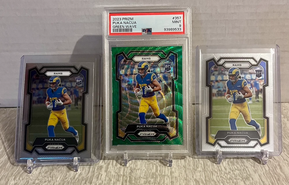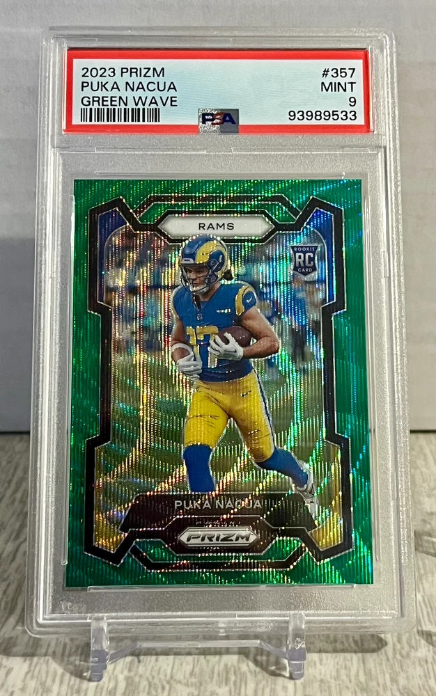 2023 Panini Prizm Puka Nacua Green Wave Prizm #357 PSA 9 & 2 Base Prizm RC Rams. Condition is Graded. Shipped with USPS Ground Advantage.