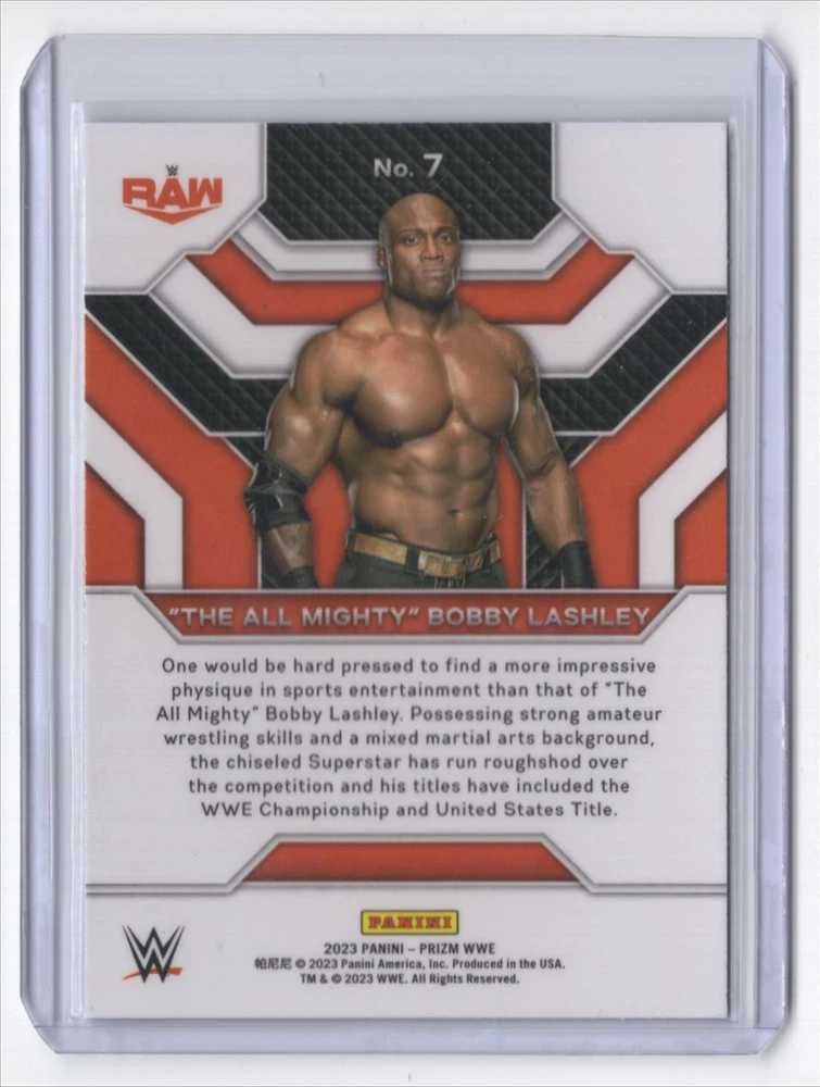 About Me Other Listings Feedback Add to Favorites Contact Me Striking Cards 901 2023 Panini Prizm WWE Top Tier The All Mighty Bobby Lashley #7 No stock photo / These are real scans or pictures Details Description: The All Mighty Bobby Lashley Category: Wrestling Year: 2023 Product: Panini Prizm WWE Top Tier Card Number: 7 Dimensions: 4" x 3" SKU: WR B0001 R01 F (19) Listing By Kronocard trading cards software v2.6.5.5