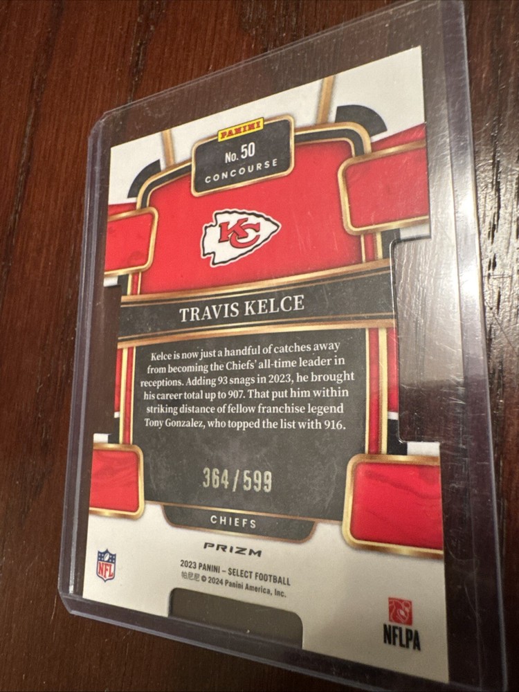 Set:2023 Panini SelectTeam:Kansas City ChiefsType:Sports Trading CardSeason:2023League:National Football League (NFL)Player/Athlete:Travis KelceManufacturer:PaniniSport:Football