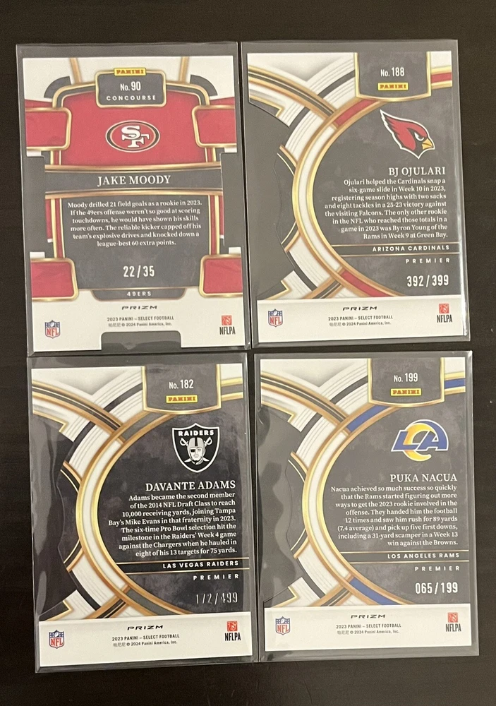 2023 Select Football #’d/RC Lot (40) Puka Nacua /199+Gibbs+Davante Adams /499