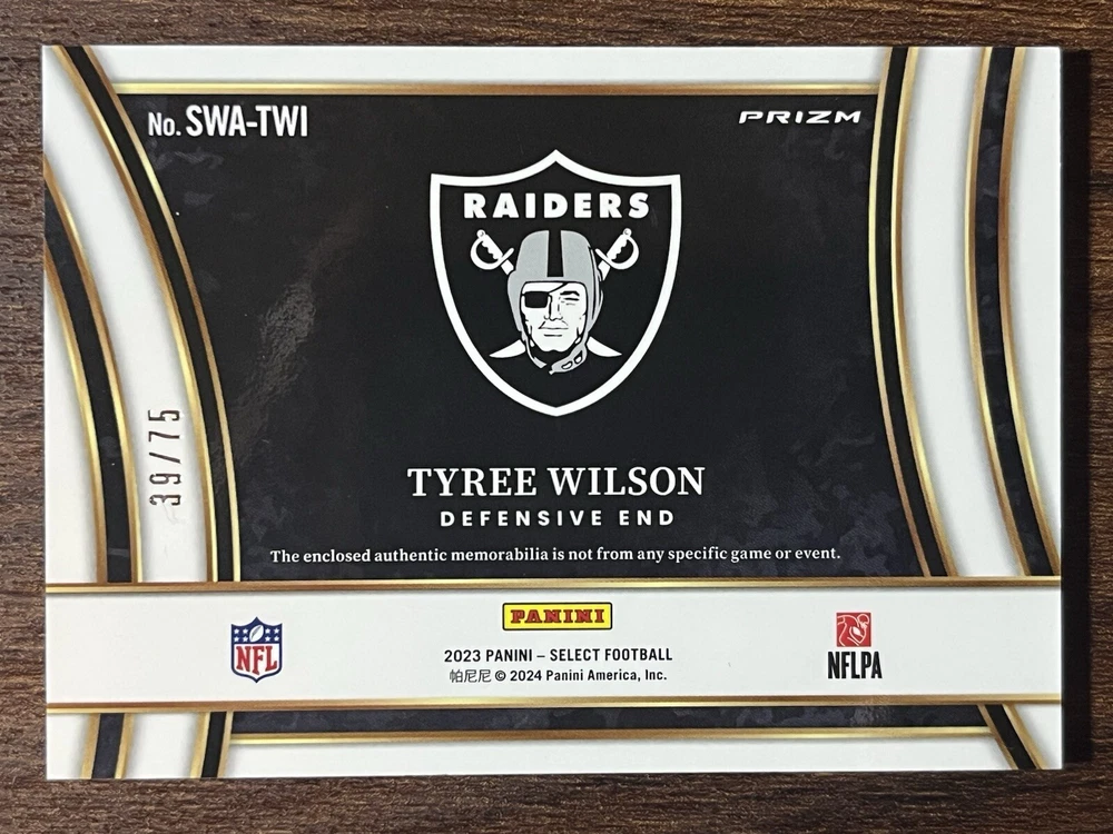 2023 Select Tyree Wilson Rookie #'d /75 White Prizm Swatch 2 Color Patch RC SP
