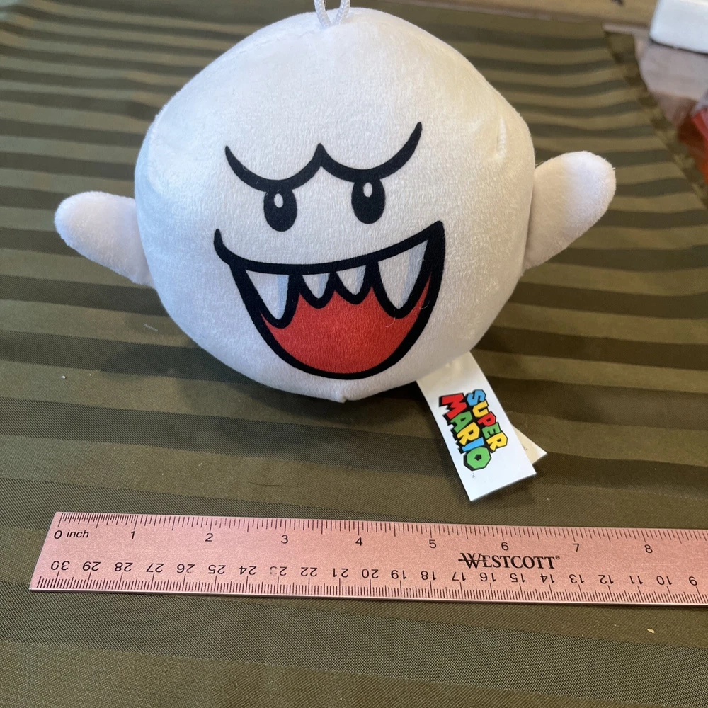 Embark on a whimsical adventure with the 2023 Super Mario Boo Plush, a charming companion for fans of the iconic video game series. Crafted with care, this plush toy features the beloved ghost character in a classic white color, capturing the essence of Boo's playful spirit from the Super Mario Bros. universe. Measuring a cozy small size of 6-8 inches, this plush is perfect for cuddles and display, making it a versatile addition to any collection. Whether for a dedicated Nintendo enthusiast or as a delightful gift, the Boo plush brings a touch of nostalgia and joy to any setting. It was made by www.goodstuff.com It is hand washable only and features a small string loop on top so the plush can be hung or attached to other items