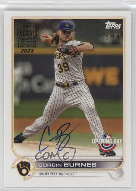 2023 Topps Archives Signature Series - Active Player Edition Buybacks #22TOD-212 Corbin Burnes (2022 Topps Opening Day) Qty Made: 58 - Baseball Card - Featuring the Milwaukee Brewers - Featuring Corbin Burnes Search for more: 2023 Topps Archives Signature Series Search for more: 2023 Topps Archives Signature Series - Active Player Edition Buybacks View all of our Listings Auctions Buy It Now About Us Located in the beautiful Pacific Northwest, COMC (Check Out My Cards) is the world's largest consignment service for trading card singles. More than 10,000 people have used our consignment service to list over 50 million trading cards. Find out how we can help you consign your items on eBay by contacting us through eBay messaging. COMC -- "The Safe & Easy Way to Buy & Sell" Representative Image - Select Specific Item above to see image of actual item Representative Image - Select Specific Item above to see image of actual item Raw Condition for Modern Cards Unless otherwise noted, raw modern cards are listed in Near Mint-Mint condition or better. A NM-MT card appears to be Mint at first glance, but upon closer inspection, may exhibit some of the following: minor print defects (e.g. roller marks, print line, dimple), minor scratches, slight edge wear, and slight corner wear. Centering is clearly visible in the images provided and does not factor into our condition assessment. Raw Condition for Vintage Cards Unless otherwise noted, raw vintage cards are listed in Excellent condition or better. An EX card may exhibit some of the following: minor rounding of corners, surface wear, print defects, light scratches, and slight edge wear/chipping. Centering is clearly visible in the images provided and does not factor into our condition assessment. Domestic Shipping Combined shipping for multiple items is available. To receive combined shipping, please ensure all desired items are in your eBay shopping cart before proceeding to checkout. eBay limits orders to 40 items per order. We automatically combine multiple orders placed on the same day. If you place multiple orders on the same day, please contact us to request a refund of applicable shipping costs. Signature confirmation may be required on invoices over $400. All cards are protected and shipped securely. International Shipping COMC offers eBay's International Shipping (EIS) for international orders under $2,500* (see country exceptions below). All duties and import fees are paid at checkout; in the rare event that there are additional import fees upon delivery, these are borne by the buyer. EIS packages route through a shipping hub in Erlanger, KY before shipping to their final destination. Please note that EIS does not allow for combined shipments. The shipping rates are determined by eBay and cannot be adjusted. *Maximum sale price exceptions: Colombia, Kuwait ($2,000); Taiwan ($1,539); Chile, Costa Rica, Guatemala, Honduras, Trinidad and Tobago ($1,000); Antigua and Barbuda, Aruba, Belize, Dominica, Grenada, Philippines, Saint Kitts and Nevis, Saint Lucia, Montserrat, Turks and Caicos Islands ($500); Dominican Republic, El Salvador ($200). Please request a shipping quote through eBay messaging for orders that exceed the maximum sale price supported by eBay's International Shipping. You will be responsible for all duties and import fees for international orders shipped outside the EIS. All cards are protected and shipped securely. Payment COMC does not accept offers on our cards through our eBay storefront. COMC utilizes eBay’s managed payments system. If you are experiencing difficulties making a payment, please contact eBay for assistance. Return Policy Returns are only accepted on the rare occasion the item is not as described. If you are making a return, please initiate the return process through eBay so a mailing label can be provided for you. Prior to listing, our expert team carefully assessed this item to represent it accurately. Please review the description and high-definition images prior to purchasing to ensure this item meets your satisfaction. We welcome you to contact us if you have further questions about this item. Trust and Integrity COMC carefully assesses each item consigned to us to prevent fraudulent items from entering the marketplace. If you believe an item offered on COMC may be fraudulent, please contact us with details so we can investigate the issue. Items we determine are outside our supported items policy may be removed. Last Modified: 6/22/2025 7:42:18 PM PDT