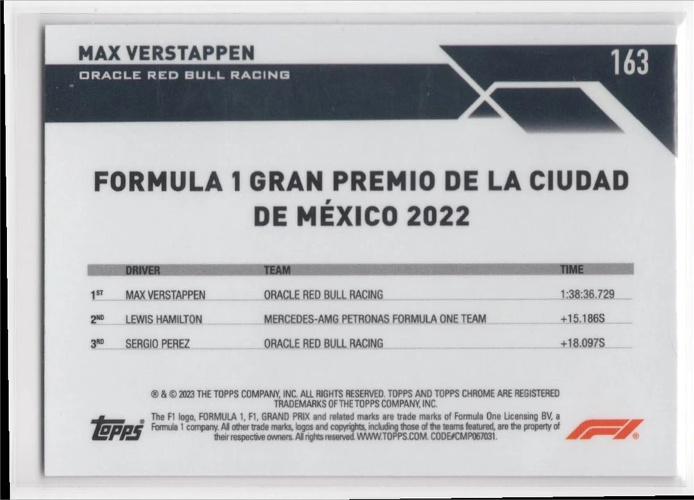 About Me Other Listings Feedback Add to Favorites Contact Me Striking Cards 901 2023 Topps Chrome Formula 1 Max Verstappen Oracle Red Bull Racing #163 No stock photo / These are real scans or pictures Details Description: Max Verstappen Category: Racing Year: 2023 Product: Topps Chrome Formula 1 Team: Oracle Red Bull Racing Card Number: 163 Dimensions: 3½" x 2½" SKU: RA B0001 R01 B (240) Listing By Kronocard trading cards software v2.7.0.1