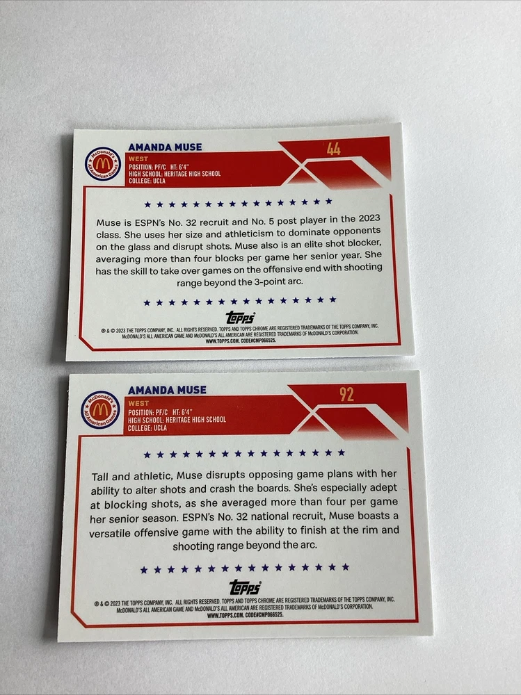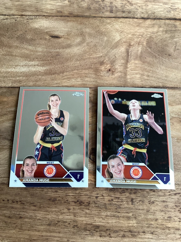This sports trading card features Amanda Muse, who played for McDonald's during the 2023 NBA season. The card is a part of the 2023 Topps Chrome McDonald's All American set. It is a Chrome parallel/variety card manufactured by Topps.