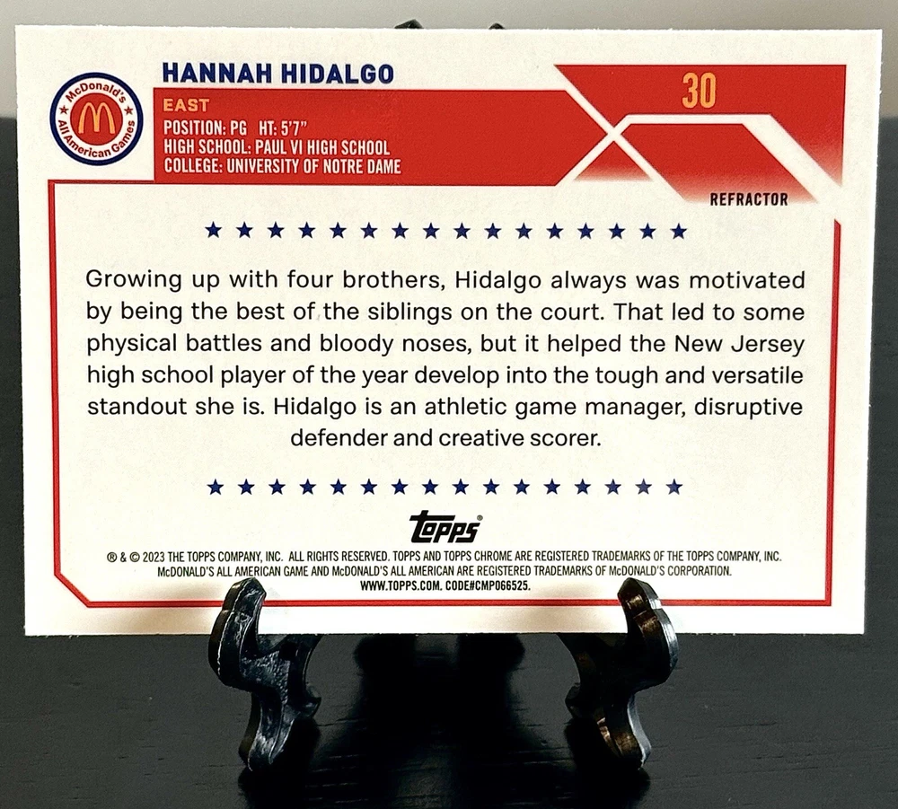 2023 Topps Chrome McDonalds All American Hannah Hidalgo REFRACTOR #30. Condition is Ungraded. Shipped with USPS Ground Advantage.