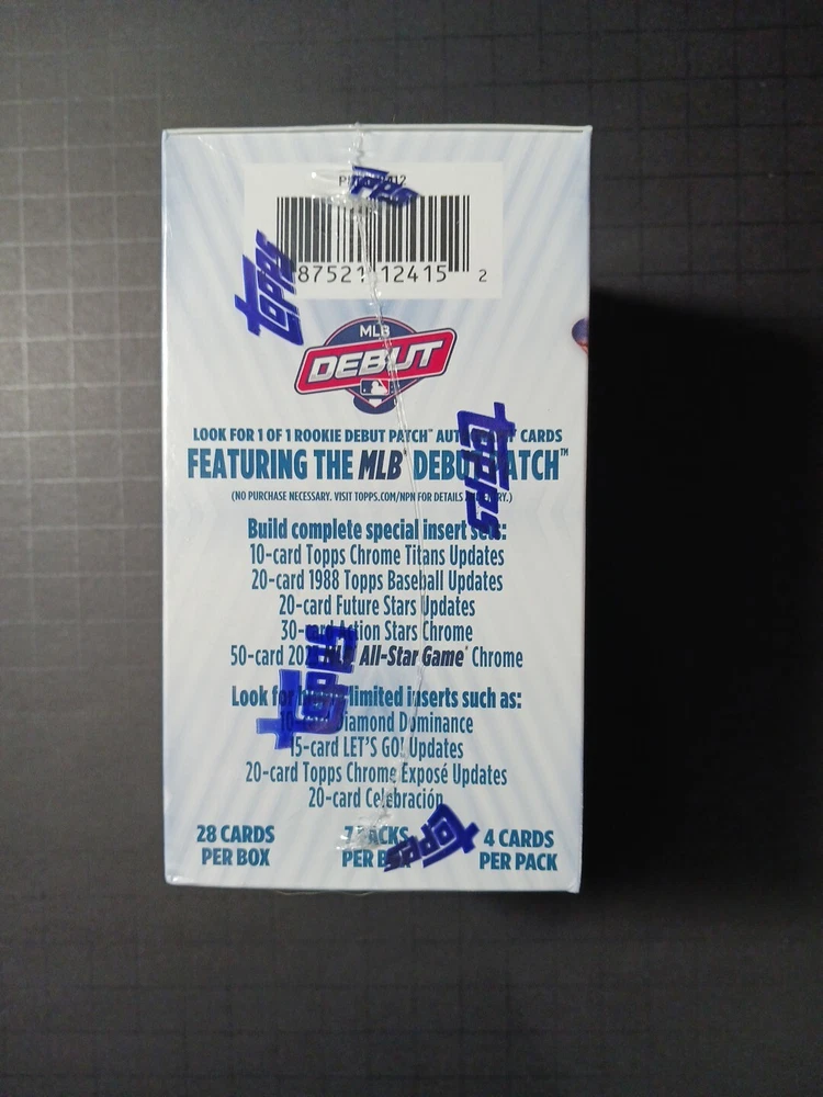 gtin13:0887521124152Number of Boxes:1Card Size:StandardFeatures:Hologram, Collectors Edition, Parallel, Rookie, Chase, Base Set, Insert, Limited Edition, Short Print, Exclusive, Serial NumberedSeason:2023Year Manufactured:2023Configuration:BoxLeague:Major League (MLB)Type:Sports Trading CardNumber of Cards:28Brand:ToppsUPC:0887521124152GTIN:0887521124152Language:EnglishPlayer/Athlete:Jordan Walker, Shohei Ohtani, Mike Trout, Wander FrancoVintage:NoEvent/Tournament:MLB World SeriesMaterial:Card StockTeam:Toronto Blue Jays, Atlanta Braves, Texas Rangers, Whitesox, Florida Marlins, Arizona Diamondbacks, San Diego Padres, New York Mets, Los Angeles Angels, Baltimore Orioles, Chicago White Sox, San Francisco Giants, Boston Red Sox, Detroit Tigers, Colorado Rockies, Pittsburgh Pirates, Chicago Cubs, Red Sox, Philadelphia Phillies, New York Yankees, Los Angeles Dodgers, Cincinnati Reds, Houston Astros, St. Louis Cardinals, Miami MarlinsSport:Baseball