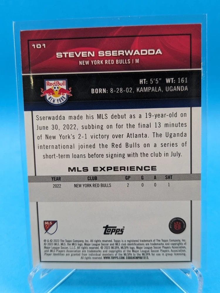 2023 Topps MLS Rookie #101 STEVEN SSERWADDA New York Red Bulls RC. Condition is Ungraded. Shipped with Economy Shipping.