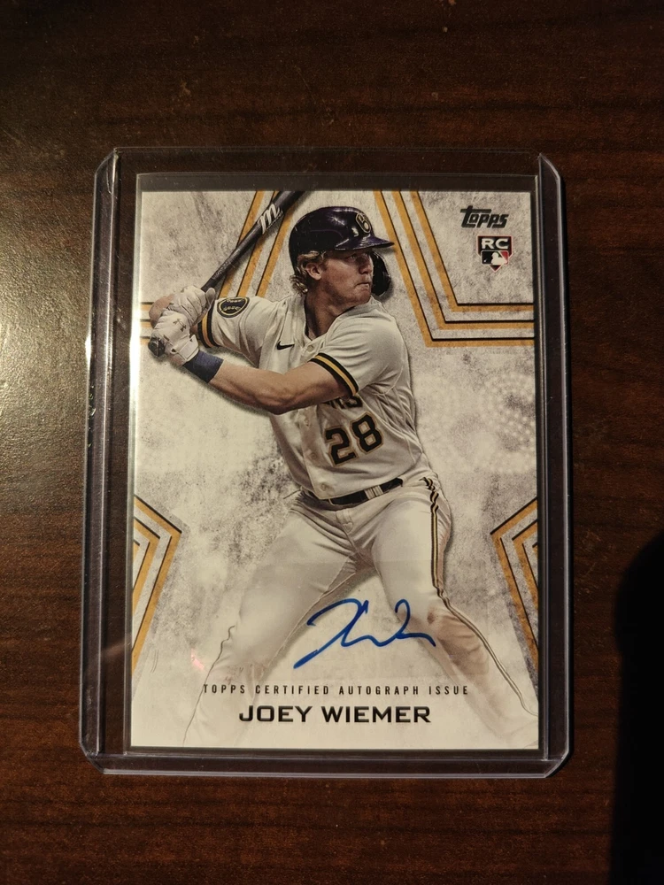 Elevate your baseball card collection with the 2023 Topps Update Series Baseball Stars Autographs card featuring Joey Wiemer. This card, numbered BSA-JWI, showcases the promising talent of Wiemer, adorned with his authentic autograph, making it a standout piece for enthusiasts and collectors. As a part of the revered Topps series, this card is a must-have for those who follow the Milwaukee Brewers or collect rookie cards. Its ungraded status leaves room for professional assessment, while its impeccable presentation and the inclusion of a gem from the 2023 season ensure it holds a place of prestige in any collection.