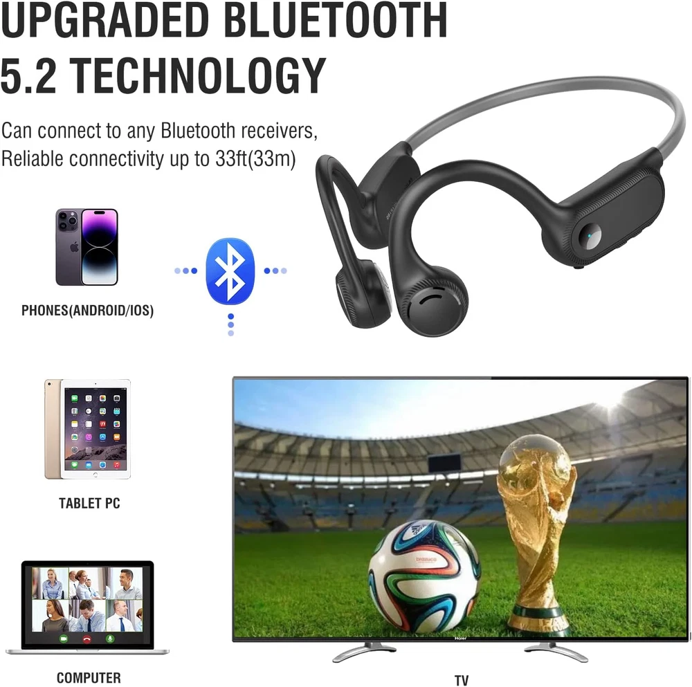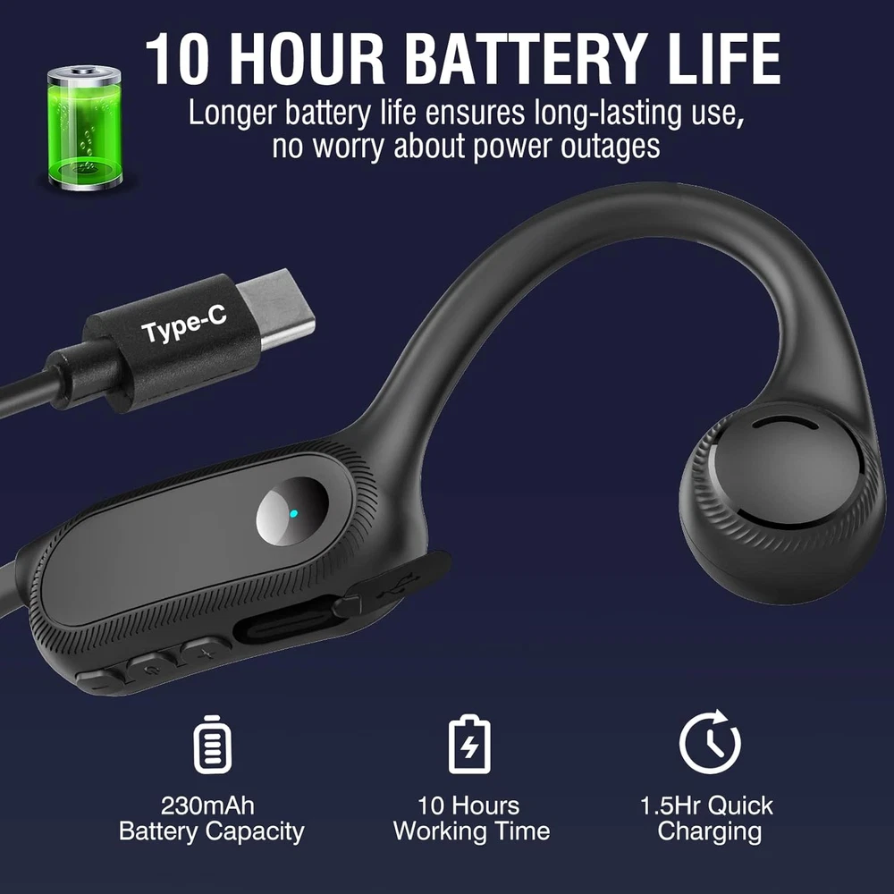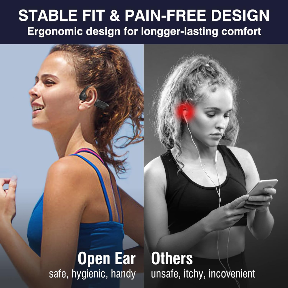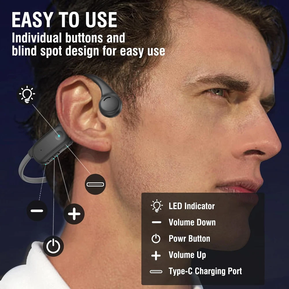 Store New Arrivals Add to Favorite View Feedback Contact Bone Conduction Headphones, 2023 Upgraded Open-Ear Wireless Bluetooth Sports Headphones with Mic, 10Hr Playtime, Bluetooth 5.2 Wireless Earphones Waterproof for Workout, Running, Biking, Hiking, Gym Description Item model number S100 Bluetooth Version 5.2 Style Modern Number of Items 1 Control Method Touch Theme Sports Battery Life 10 Hours Noise Control Sound Isolation Bluetooth Range 10 Meters Control Type Media Control Wireless Communication Technology Bluetooth Cable Feature Charging Cable & Data Cable Product Dimensions 4.92 x 3.94 x 1.57 inches Material Silicone, Titanium Package Type FFP Age Range (Description) Adult Ear Placement Open Ear Audio Driver Type Bone Conduction Driver Form Factor On Ear Specific Uses For Product Amateur, Personal, Business Included Components Type-C Fast Charging Cable, Manual Model Name Celsus Unit Count 1.0 Count Country of Origin China Water Resistance Level Waterproof Item Weight 0.917 ounces Connectivity Technology Wireless Headphones Jack Type C Charging Time 1.5 Hours Color Red Compatible Devices Car Audio Systems, Cellphones, Laptops, Desktops, iphone Batteries Lithium Polymer batteries required. (included) Recommended Uses For Product Cycling, Running, Exercising Earpiece Shape around_ear 【Upgraded Bone Conduction Headphones】CelsusSound open-ear headphones adopt the latest non-vibrating bone conduction technology, with nothing stuck in your ears, allowing you to be aware of your surroundings while listening to music. Customized and designed by professional acoustic engineers, they feature louder highs, softer mids and heavier bass. These bone conduction headphones are also equipped with improved audio processing technology and clear resolution, bringing you a listening experience like being at a concert. 【Lightweight and Comfortable to Wear】The running headphones use a wrap-around titanium frame and an ultra-lightweight design, weighed only 0.9 ounces. A bud-free design and ergonomic wearing style to maximize fit and comfort, you will not feel any pain even after prolonged wearing. The lightweight titanium headband is extremely ductile and can be quickly restored to its original shape after being folded at will, flexible and durable for different head sizes. The workout headphones with IPX4 Certified Waterproof Rating are the perfect choice for sports enthusiasts, suitable for running, biking, driving, gym and even extreme sports, etc. 【10Hr Battery Life & Type-C Fast Charging】Strongly upgraded battery life allows you to enjoy 10 hours of music, calls, audiobooks, podcasts and more continuously. This headphones adopt Type-C fast charging that is safe and stable, so you never have to worry about traveling without your music. Supports dual-sided charging function, 20 minutes on a single charge ensures up to 2 hours of battery life. Saving time for you. 【Bluetooth Headset with Microphone】The upgraded Bluetooth 5.2 headset frees you from the clutter of cables and you will feel like music has become a part of you. Widely compatible with Android, IOS, TV, Video Conferencing and any other devices that support Bluetooth connectivity. Not only perfect for sports, but also useful for business people who often work from home and hold video conferences. 【Perfect After-Sales Service】You get a 90-day money back and warranty, if you have any questions, please feel free to , we will reply and solve all your problems within 6 hours. We care about all the details and value the customer's shopping experience. Each headset is tested manually, add it to your cart and it will become your favorite sports partner and a perfect gift for your loved ones, family and friends. For more details, please refer to the product description. Product Description A New Way to Listen! Born for Sports! If you are still troubled by the discomfort caused by wearing traditional in-ear earbuds for long periods of time during exercise, then congratulations that you have found the best solution. CelsusSound is a famous brand of sports headphones. We developed this upgraded version of bone conduction headphones to meet the needs of sports enthusiasts, provide you with energy and fun during boring sports. Unique Advantages of CelsusSound Bone Bonduction Headphones 1 -Lightweight design with 0.9oz, comfortable to wear 2-Upgraded Bluetooth 5.2 Technology 3-Noise cancelling microphone for clearer calls 4-220mAh large capacity battery, up to 10H playtime 5-USB C fast charging, two sides are available 6-IPX4 waterproof for sweat, dust, oil and particles 7-Individual buttons for easy to control Open-Ear Design, Comfortable to wear, you will not feel any pain even after prolonged wearing Being different from in-ear type, open ear headphones can protect the eardrum from damage when people listen to music for a long time, and won't make the ear pain unbearable either because of long time wearing. Open-ear design can avoid some dangerous situations from happening as you can also hear the surroundings when you use it to listen to music. Unlike wearing traditional earbuds headphones and headset that you aren't isolated from the environment completely, ideal for sports personnel to use. Security is very important to Us When we are exercising, we sometimes get very bored and need a headset to give us energy and fun, CelsusSound open sports headphones allow you enjoy high quality music and be aware of the changes in your surroundings, safely and comfortably. With 10 hours of extra-long power, you can run 2 marathons without any problem, and you don't have to worry about running out of power during exercise at all. Upgrade 5.2 Bluetooth technology Imported Qualcomm chip, providing more efficient connection and more stable signal.(up to 2 times than BT5.0) Type-c Fast charging Double-sided charging design, Support fast charging function, convenient and fast, save your time. Independent button with blind spot for simpler operation L