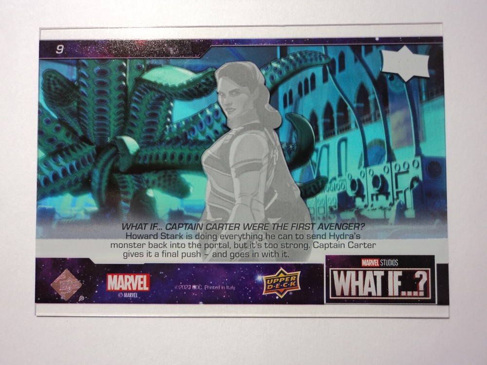 PLEASE DO NOT PAY FOR MULTIPLE PURCHASES SEPARATELY ______________________________________________________________________________________________ Here's what you get: Marvel What If ? - Upper Deck - 2023 CHASE CARD CLEAR CUT CHAPTERS - EPISODE 1 # 9 WHAT IF...CAPTAIN CARTER WERE THE FIRST AVENGER? ______________________________________________________________________________________________ Card stored in a smoke-free home. Payment due within 48 hours of purchase. NOTE: IF PURCHASING FROM MORE THEN ONE LISTING, PLEASE DO NOT PAY FOR THEM SEPARATELY, RATHER REQUEST AN INVOICE FROM ME, OR AWAIT RECEIPT OF AN INVOICE FROM ME BEFORE PAYING. When possible, I will combine shipping and handling. A tracking number will be provided on all First Class and Priority packages. You must have a confirmed eBay mailing address. My goal is to provide excellent service to buyers, so I may earn your business over and over. Any questions, please feel free to e-mail me. Please check out my other listings. Happy Collecting. ______________________________________________________________________________________________