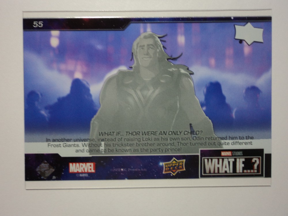 PLEASE DO NOT PAY FOR MULTIPLE PURCHASES SEPARATELY ______________________________________________________________________________________________ Here's what you get: Marvel What If ? - Upper Deck - 2023 CHASE CARD CLEAR CUT CHAPTERS EPISODE 7 # 55 WHAT IF...THOR WERE AN ONLY CHILD? ______________________________________________________________________________________________ Card stored in a smoke-free home. Payment due within 48 hours of purchase. NOTE: IF PURCHASING FROM MORE THEN ONE LISTING, PLEASE DO NOT PAY FOR THEM SEPARATELY, RATHER REQUEST AN INVOICE FROM ME, OR AWAIT RECEIPT OF AN INVOICE FROM ME BEFORE PAYING. When possible, I will combine shipping and handling. A tracking number will be provided on all First Class and Priority packages. You must have a confirmed eBay mailing address. My goal is to provide excellent service to buyers, so I may earn your business over and over. Any questions, please feel free to e-mail me. Please check out my other listings. Happy Collecting. ______________________________________________________________________________________________