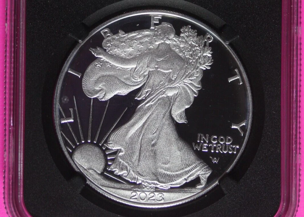 Composition: Silver Brand/Mint: U.S. Mint Certification: NGC Fineness: 0.999 Year: 2023 Strike Type: Proof Coin: American Eagle Grade: PR 70 Total Precious Metal Content: 1 Troy Ounce Shape: Coin Country/Region of Manufacture: United States Precious Metal Content per Unit: 1 oz