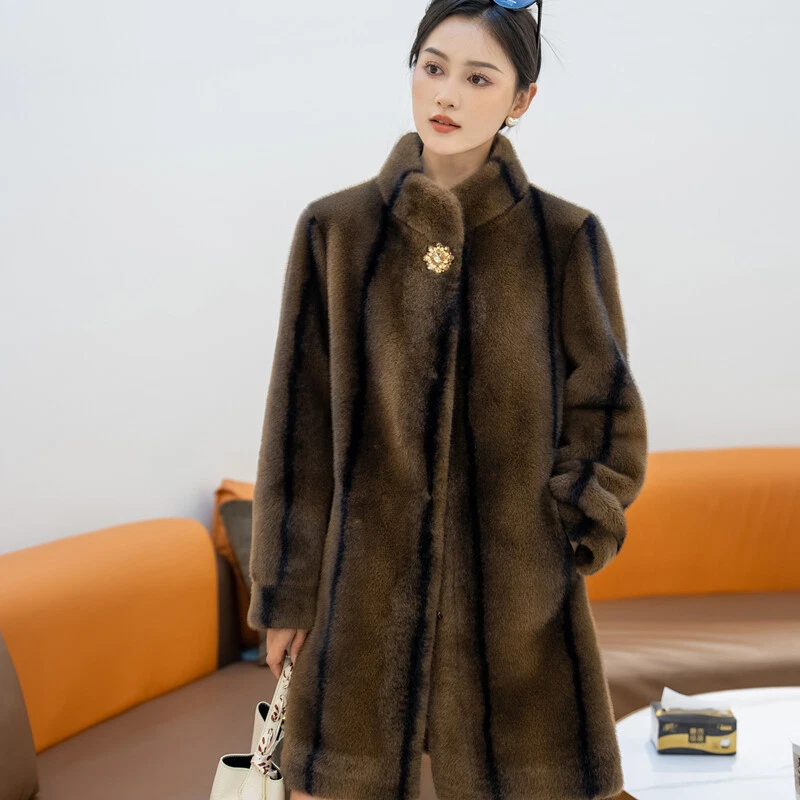 $ 76.99Winter Thickened Long Suit Collar Faux Mink Fur Jacket Furry Coat Parka Winter