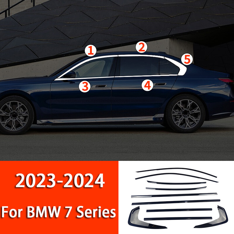For 2023-2025 BMW 7 Series 740Li Black Car Window Molding Trim Frame Strip 10pcs Product Description Product Description: Fit For For BMW 7 Series 740Li 2023-2025 Note: Before purchasing the product, make sure that the installation part is exactly the same as the picture we publish. *Specifications: Condition: 100% Brand New Color: As shown in the figure Include: 10Pcs/1Set Material:High quality stainless steel Made in an ISO 9001 facility to ensure good quality *Product Introduction: 1. MATERIAL--100% brand new. Strict factory QC test, high quality guarantee. 2. APPLICATION--Provide a premium and stylish decor for your car, cover existing scratches and decorate your car. 3. DESIGN--Perfectly match with your original car. It can bring luxurious decoration upgrades to your car. *Installation Instruction: 1. Please clean the area and eliminates the substance before mounting this product. 2. To check the installation area according to the vehicle with this product first and then release the back of 3M tape paper (double-sided tape, a label) is removed 3. Products are equipped on the vehicle with exactly and use a clean cloth to press evenly is attached. 4. Products within 24 hours after installed, please avoid washing your car and touching the water. Tips: Sub-zero weather during the winter, the adhesion 3M tape adhesion is getting weak .You could heat the place of 3M tape with a heat gun *Notes: If you have any problems,please kindly email us and give us a change to help you before you leave any feedback,and we will get back to you within 2 working days,thank you so much! If you need more items of this model, please visit our store, thank you for your patronage!