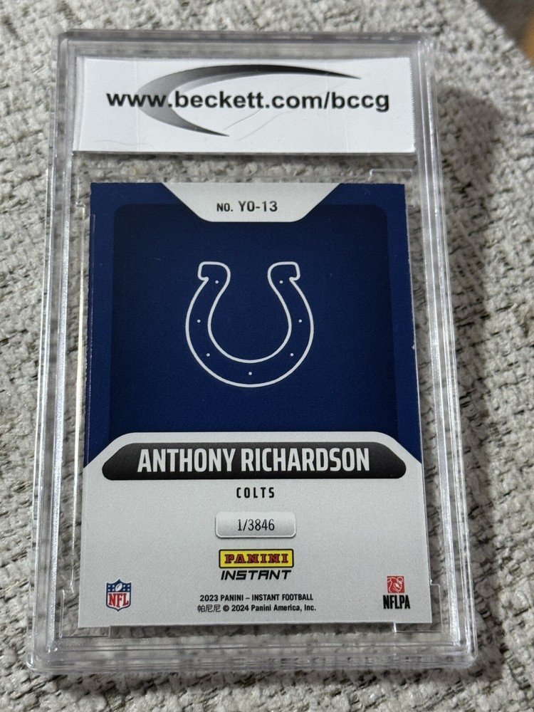 2023-24 Anthony Richardson Panini Instant Year One RC /3846 BCCG 9 #YO13. Condition is Graded. Shipped with USPS Ground Advantage.