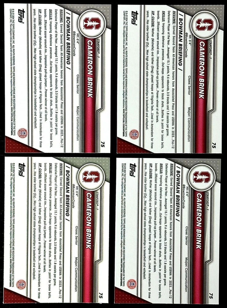 2023-24 Bowman U Chrome Sapphire Cameron Brink 1st Lot of 4 Cards UCONN #75. Condition is Used. Shipped with USPS Ground Advantage.