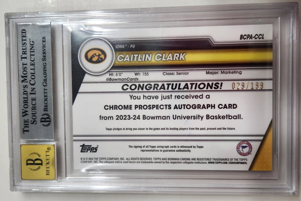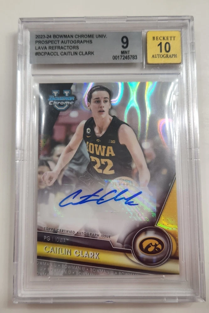 Auto graded 10 the card is mint 9. Card was sleeved and top loaded right away ,only touched on the side. This card is only going to go up and demand more as time goes on. Good luck.
