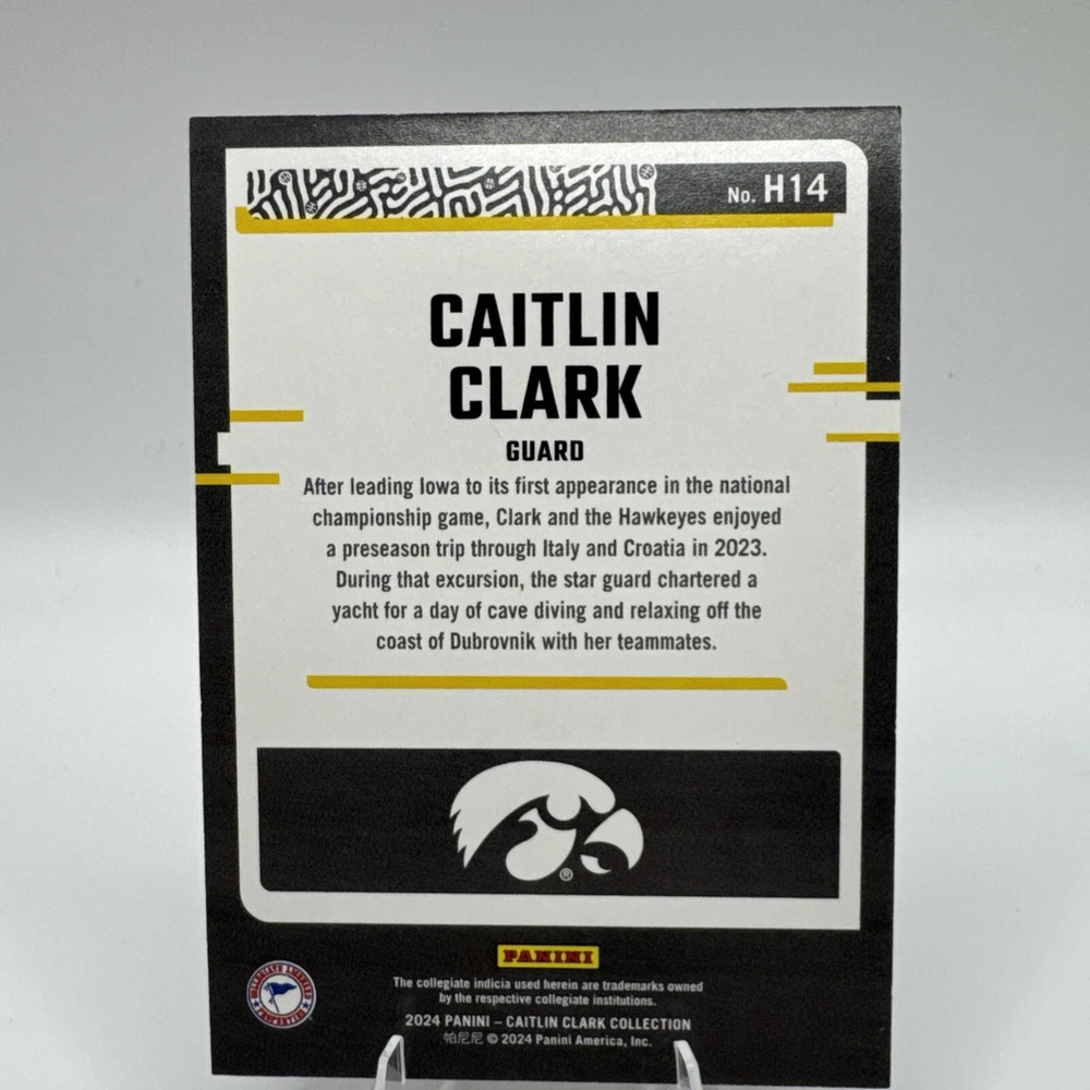 Elevate your collection with the 2023-24 Caitlin Clark Collection Donruss Highlights Special H14 Pointed Stars card, a sought-after piece from Panini. This exclusive card, featuring the Iowa Hawkeyes and Indiana Fever standout, is a testament to Clark's athletic prowess on the court. With a limited print run of just 299, it's a unique treasure for fans and collectors alike. Crafted in the United States, this standard-sized sports trading card belongs to the prestigious 2023-24 Panini Collection and is not autographed. It's a must-have for enthusiasts of the WNBA and basketball aficionados who appreciate the finesse of the sport and the skill of its players. This ungraded card promises to be a valuable addition to any collection.