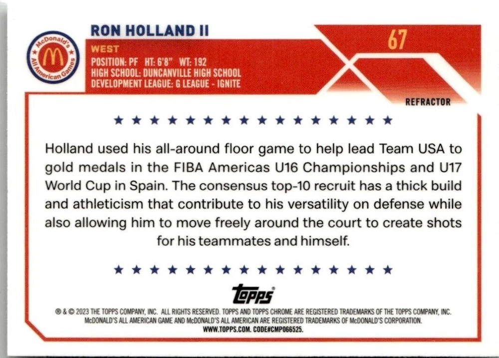 2023-24 CHROME MCDONALD'S ALL AMERICAN RON HOLLAND II DUNCANVILLE HIGH SCHOOL