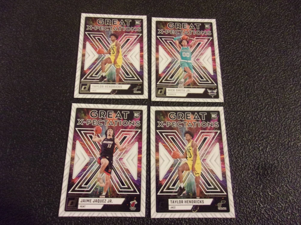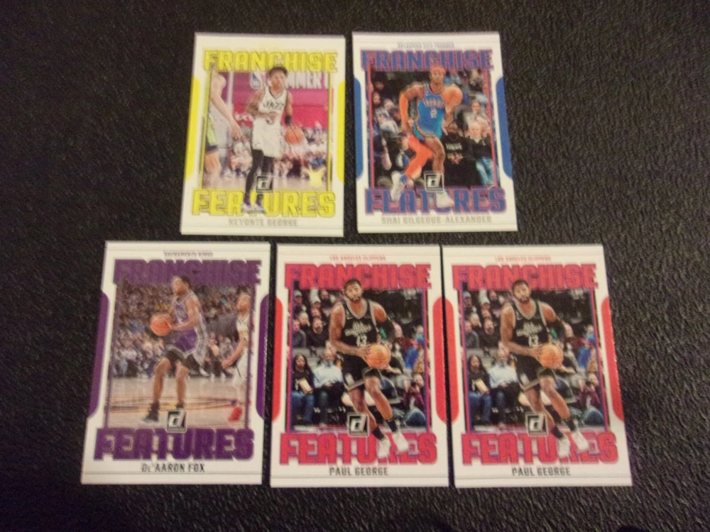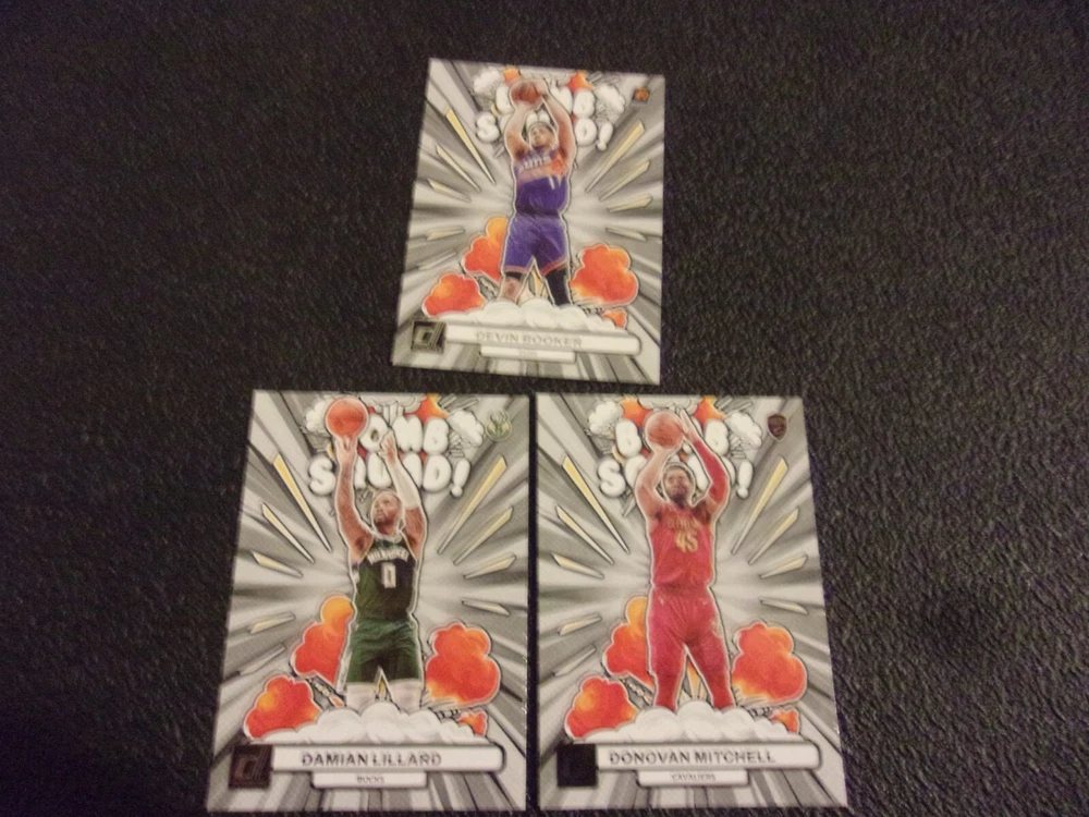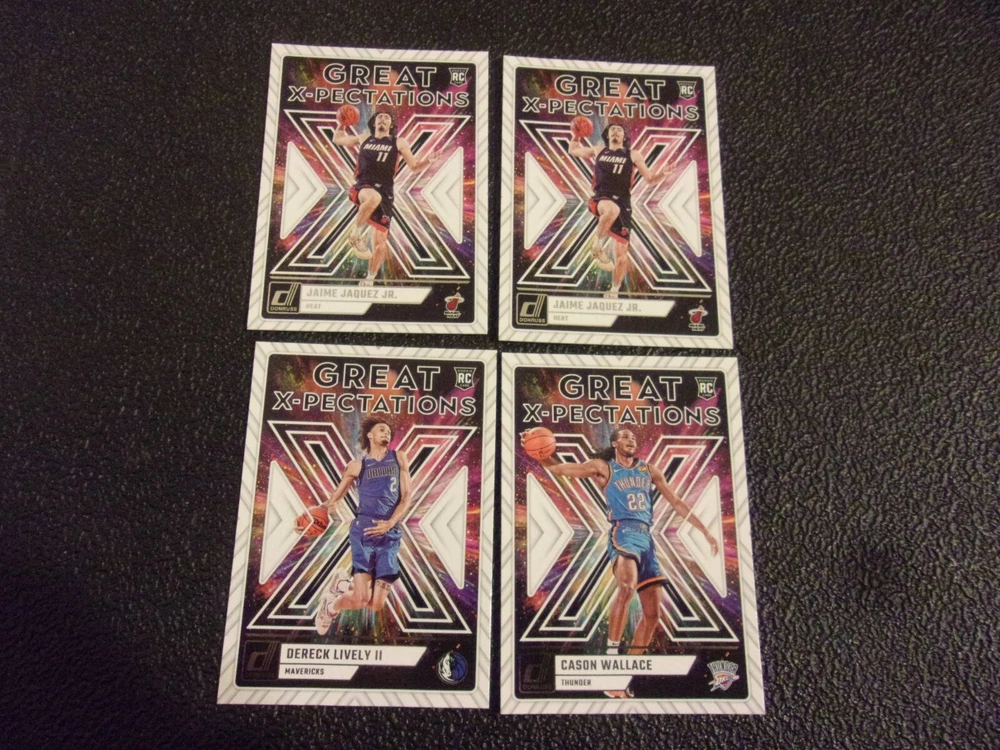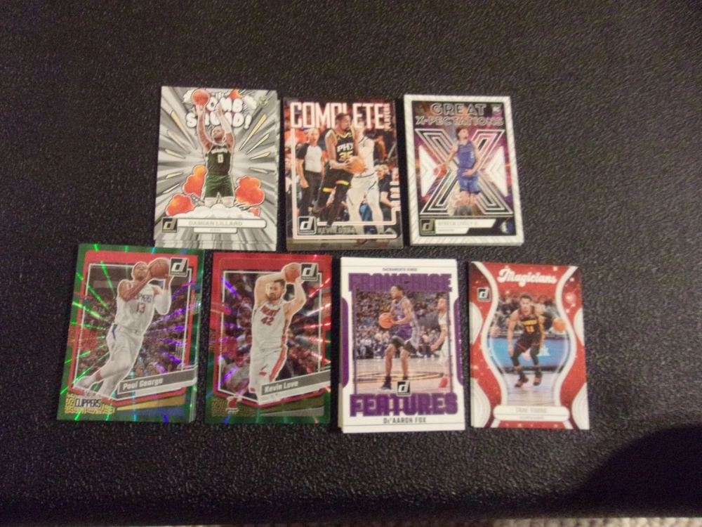 You Are Bidding On A (34) Card Lot Of 2023-24 Donruss Basketball Cards All Are Inserts Or Parallels You Will Get The Exact Cards Pictured (1) HOLO RED & GREEN LASER SERIAL #'ed /75 #166 Kevin Love Serial #59/75 (6) GREEN LASER HOLO #6 Colin Sexton #48 Kyrie Irving #64 Jimmy Butler #83 Max Strus #125 Mark Williams #167 Paul George (2) "MAGICIANS" INSERT CARDS #6 Trae Young (2X) (3) "BOMB SQUAD!" INSERT CARDS #5 Devin Booker #11 Donovan Mitchell #12 Damian Lillard (4) "COMPLETE PLAYERS" INSERT CARDS #6 Kawhi Leonard #7 Damian Lillard (2X) #9 Kevin Durant (10) "FRANCHISE FEATURES" INSERT CARDS #2 Mikal Bridges #3 Joel Embid #7 Jalen Brunson #17 Anthony Edwards (2X) #18 Shai Gilgeous-Alexander #20 Keyonte George (ROOKIE) #22 Paul George (2X) #24 De'Aaron Fox (8) "GREAT X-PECTATIONS" INSERT CARDS #7 Nick Smith Jr (ROOKIE) #9 Taylor Hendricks (2X) (ROOKIE) #13 Jaime Jaquez Jr (3X) (ROOKIE) #18 Cason Wallace (ROOKIE) #20 Dereck Lively II (ROOKIE) All Are In Nice Shape & Will Ship In Individual Soft Sleeves USPS Ground Advantage With Tracking In A Bubble Mailer