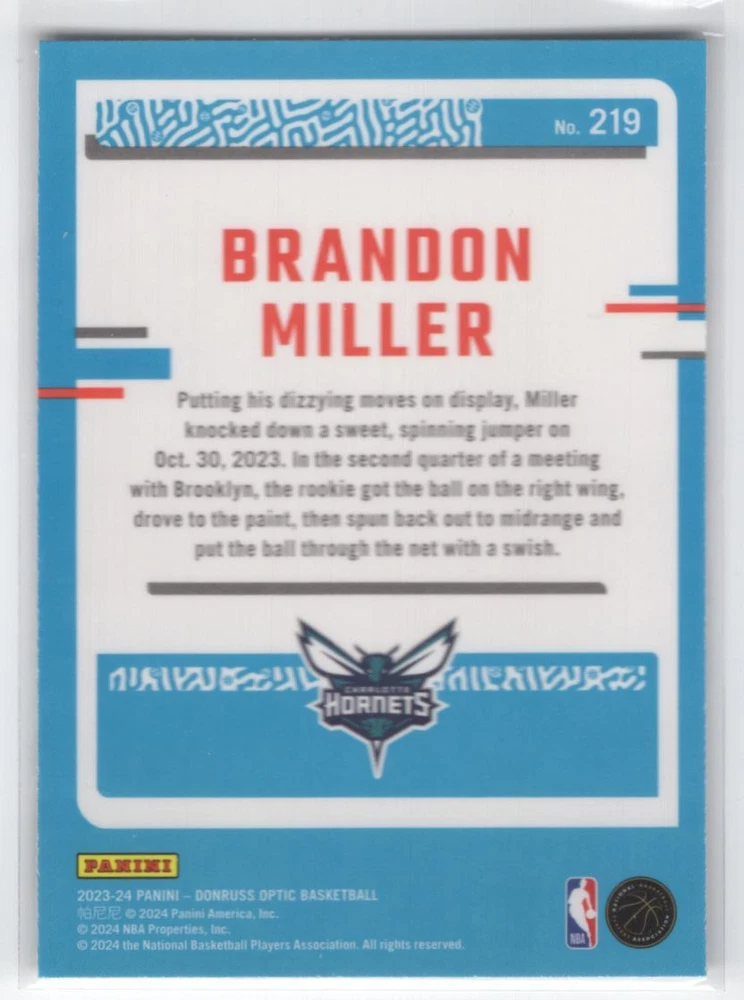 2023-24 Donruss Optic Rated Rookie Brandon Miller Rookie Charlotte Hornets #219