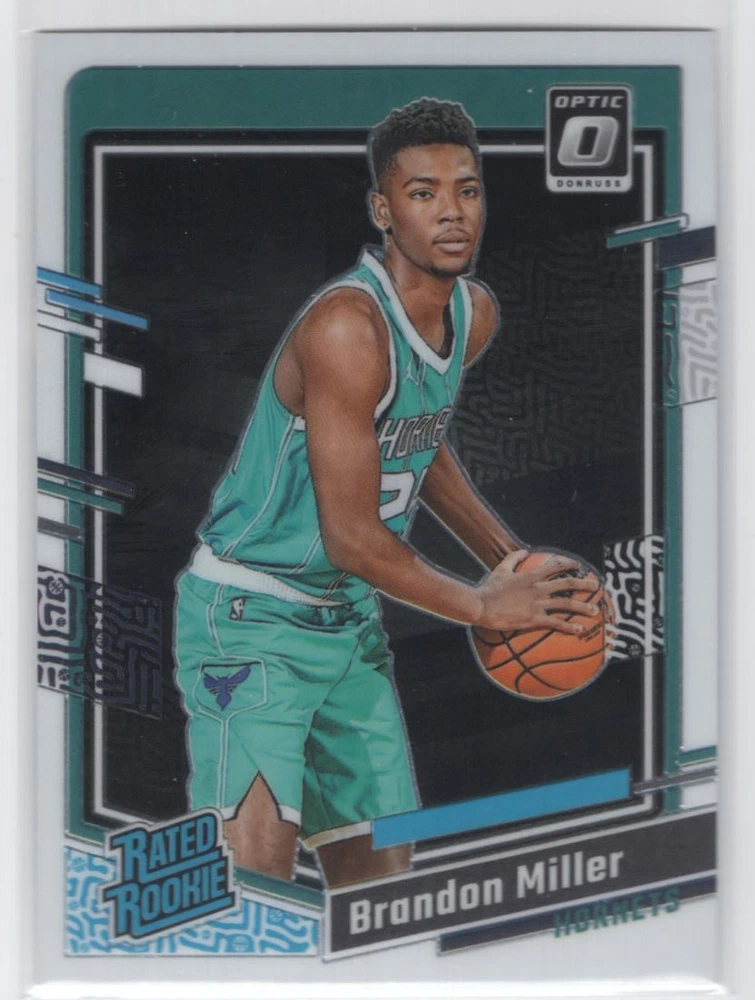 Card Number: 219 Year Manufactured: 2023 Team: Charlotte Hornets Type: Sports Trading Card Autographed: No Features: Rookie Vintage: No Card Name: 2023-24 Donruss Optic Rated Rookie Brandon Miller Rookie Charlott Card Size: 3½" x 2½" Season: 2023 Game: Unspecified Character: Brandon Miller Sport: Basketball Set: Donruss Optic Rated Rookie Original/Licensed Reprint: Original Graded: No Player/Athlete: Brandon Miller Franchise: Basketball