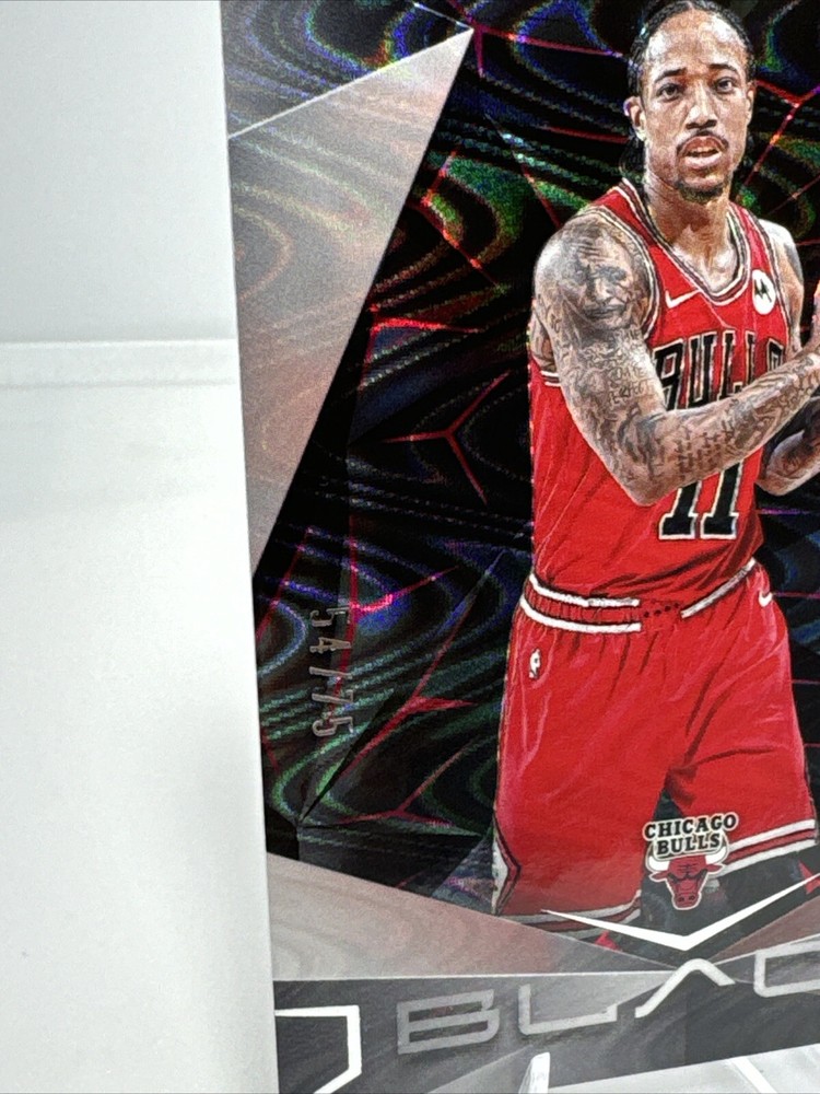 Season: 2023-24 League: National Basketball Association (NBA) Manufacturer: Panini Type: Sports Trading Card Features: Parallel/Variety, Serial Numbered Sport: Basketball Set: 2023 Panini Black Player/Athlete: DeMar DeRozan Parallel/Variety: soundwave refractor Autographed: No Team: Chicago Bulls, San Antonio Spurs Print Run: 75