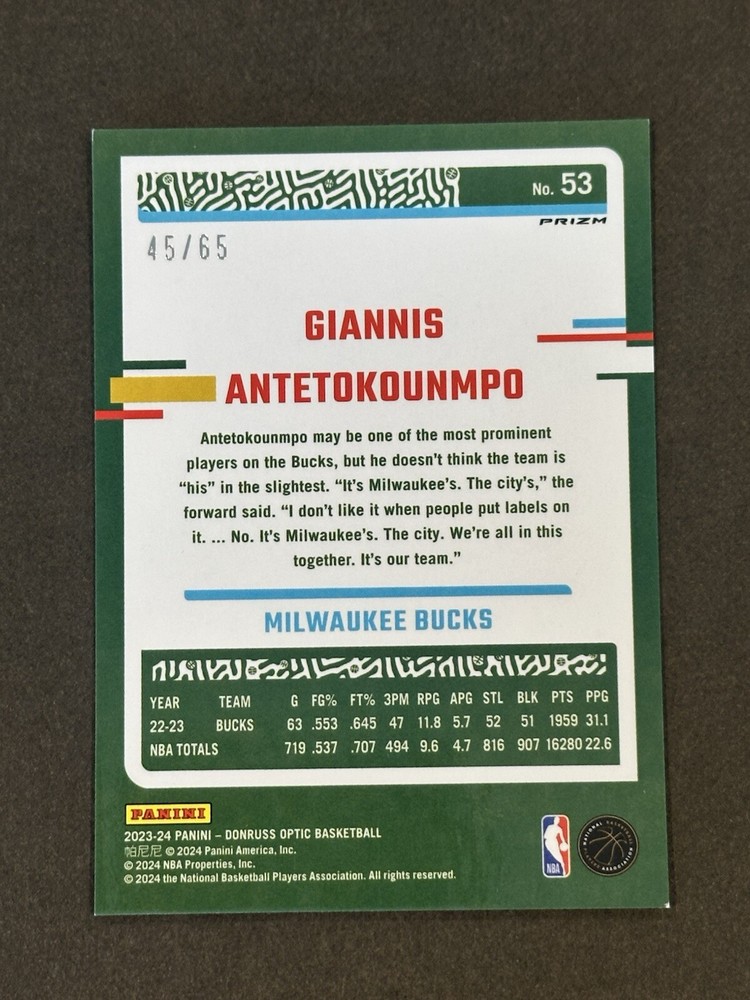 2023-24 Panini Donruss Optic Giannis Antetokounmpo #53 Green Scope Choice /65. Condition is Ungraded. Sent with Australia Post Domestic Regular Letter With Tracking.