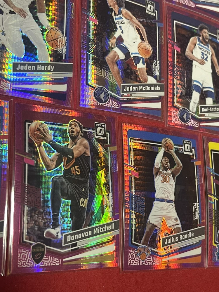 This lot includes 14 trading cards from the 2023-24 Panini Donruss Optic NBA collection, featuring both rookie and veteran players. The cards are all original and have not been autographed or reprinted. Each card showcases the player in a hyper pink prizm design, making them stand out in any collection. With features such as short print, parallel, and insert, these cards are sure to be a valuable addition for any basketball fan or collector. The lot was manufactured in the United States and is part of the National Basketball Association (NBA) league. Get your hands on this rare lot today!