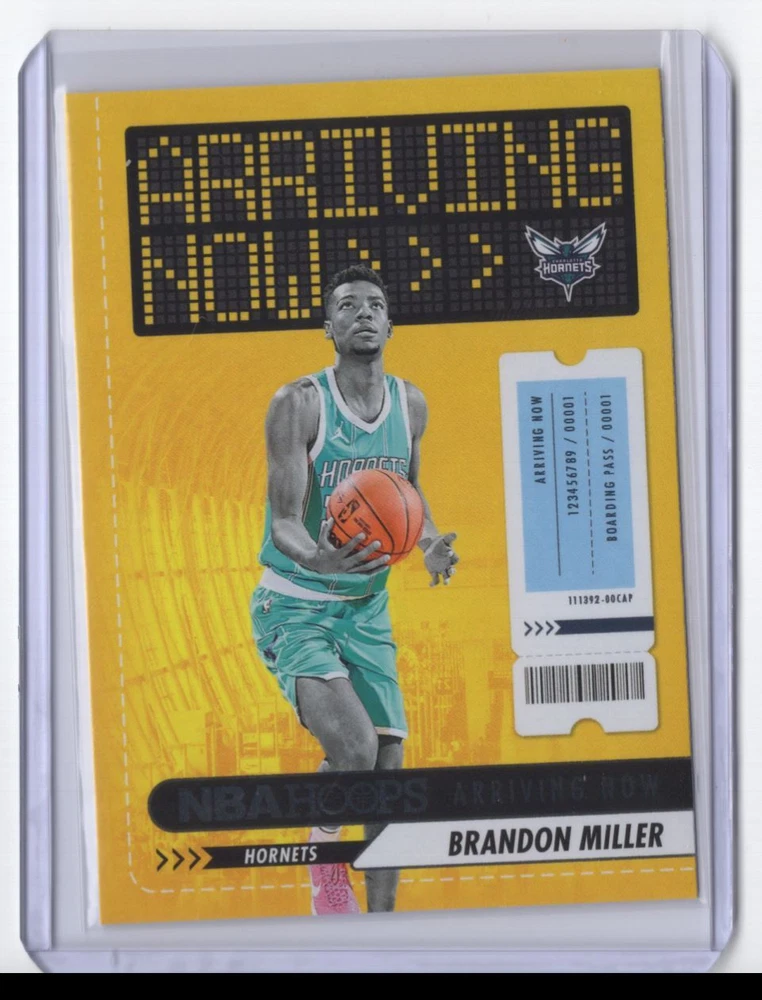 Sport: Basketball Autographed: No Set: Panini Hoops Arriving Now Franchise: Basketball Graded: No Card Size: 4" x 3" Original/Licensed Reprint: Original Character: Brandon Miller Features: Rookie Card Name: 2023-24 Panini Hoops Arriving Now Brandon Miller Rookie Charlotte Card Number: 13 Season: 2023 Type: Sports Trading Card Team: Charlotte Hornets Year Manufactured: 2023 Vintage: No Manufacturer: Panini Hoops Game: Unspecified Player/Athlete: Brandon Miller