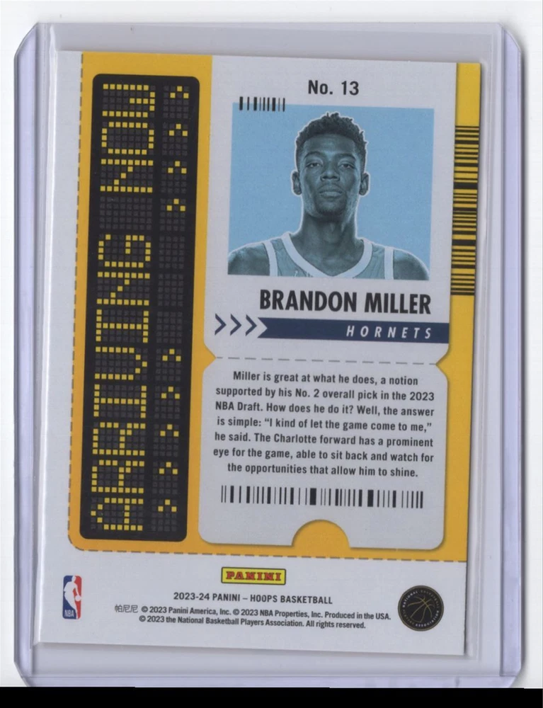 2023-24 Panini Hoops Arriving Now Brandon Miller Rookie Charlotte Hornets #13
