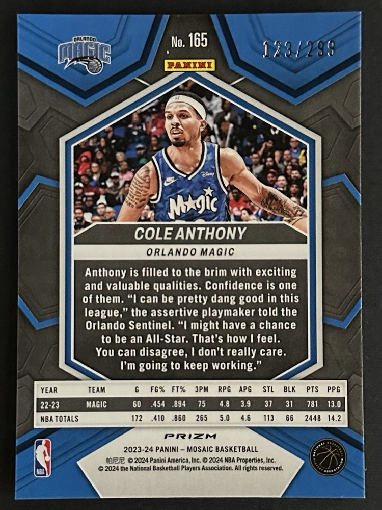 2023-24 Panini Mosaic Cole Anthony Red Seismic #/299 Orlando Magic NBA Card