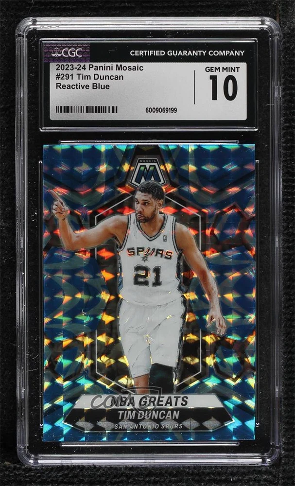 2023-24 Panini Mosaic Reactive Blue Prizm #291 Tim Duncan NBA Greats. Condition is Ungraded. Shipped with eBay Standard Envelope for Eligible Items up to $20.