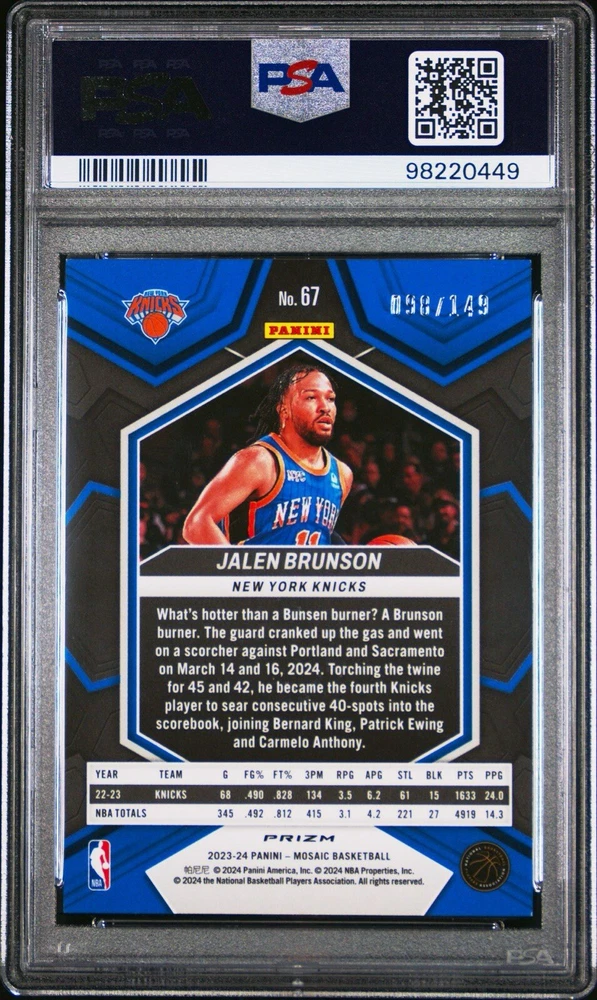 2023-24 Panini NBA Mosaic Pink Mosaic Jalen Brunson /149 New York Knicks #67