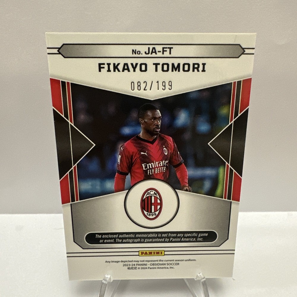 This card is a must-have for collectors! The sleek Obsidian design makes Fikayo Tomori’s autograph and jersey swatch pop. The /199 rarity adds value, and the on-card auto looks sharp. Perfect for AC Milan fans or anyone chasing high-end soccer memorabilia. Stunning addition to any collection!