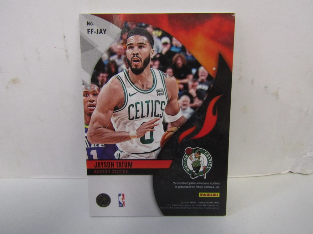 Selling a 2023-24 Panini Phoenix Jayson Tatum Fire Fabrics Game Used Patch Celtics Item #:68331 Combined Shipping is free, no additional charges for additional cards Mahalo and Thank You For Looking.