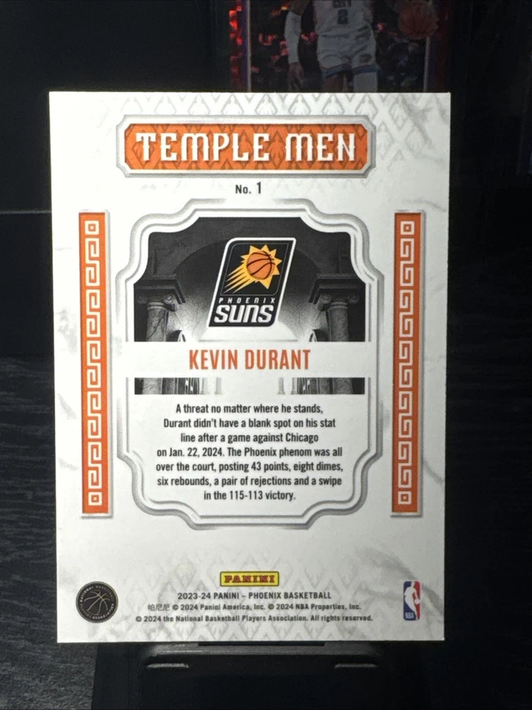 2023-24 Panini Phoenix Kevin Durant Temple Men #1. Condition is Ungraded. Shipped with eBay Standard Envelope for Eligible Items up to $20.