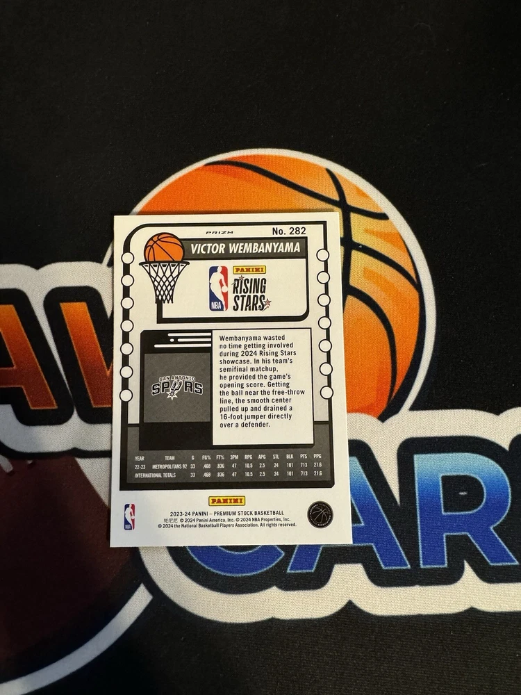 Year Manufactured:2024Team:Boston Celtics, Dallas Mavericks, Denver Nuggets, France, Golden State Warriors, Houston Rockets, Indiana Pacers, Los Angeles Lakers, Minnesota Timberwolves, New York Knicks, Phoenix Suns, San Antonio Spurs, Spurs, Team France, Warriors, Lakers, Suns, Mavs, Mavericks, Rockets, Celtics, Knicks, Pacers, Timberwolves, NuggetsPlayer/Athlete:Chris Paul, Jeremy Sochan, Keldon Johnson, Victor Wembanyama, Wemby, Victor, Victor Wembayama, Keldon, SochanCard Thickness:35 Pt.Sport:BasketballCountry/Region of Manufacture:United StatesVintage:NoManufacturer:PaniniSeason:2023-24Set:2023-24 Panini Premium Stock BasketballOriginal/Licensed Reprint:OriginalLanguage:EnglishAutographed:NoType:Sports Trading CardFeatures:Base Set, Chase, Exclusive, Hologram, Limited Edition, Parallel/Variety, Rookie, Short Print, Pulsar, Rising Stars, RCLeague:National Basketball Association (NBA), NBAEvent/Tournament:NBA FinalsMaterial:Card StockCard Size:StandardParallel/Variety:PulsarCard Number:282Card Name:2023-24 NBA Hoops Premium Stock Victor Wembanyama Rookie Pulsar