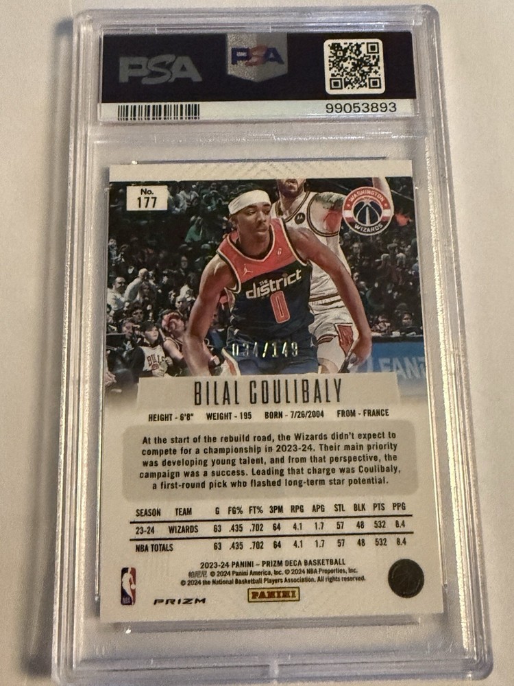 2023-24 Panini Prizm Deca Blue Prizm #177 Bilal Coulibaly /149 RC PSA 10 RC. Condition is Graded. Shipped with USPS Ground Advantage.
