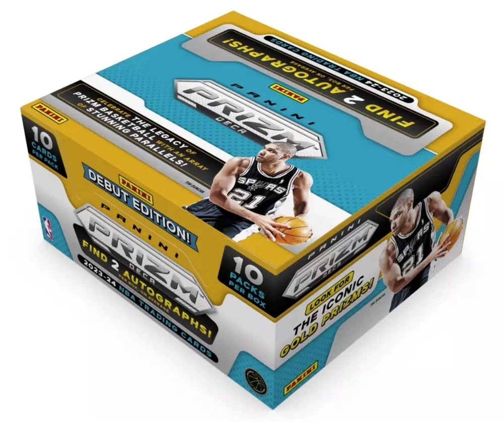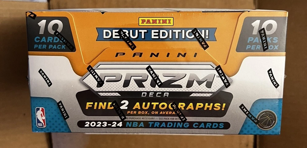 This limited edition 2023-24 Panini Prizm Deca NBA Basketball Hobby Box is a must-have for any sports trading card collector. The box contains 100 cards featuring players from the National Basketball Association (NBA) league. The cards are standard size and come from the manufacturer Panini. This box is part of a presale and is still sealed. It is a great opportunity to get your hands on this highly sought-after item. The set is from the 2023-24 season and is a perfect addition to any collection. Don't miss out on this chance to own a piece of basketball history. Ships the day it gets delivered. Experience shipping boxes/cards!