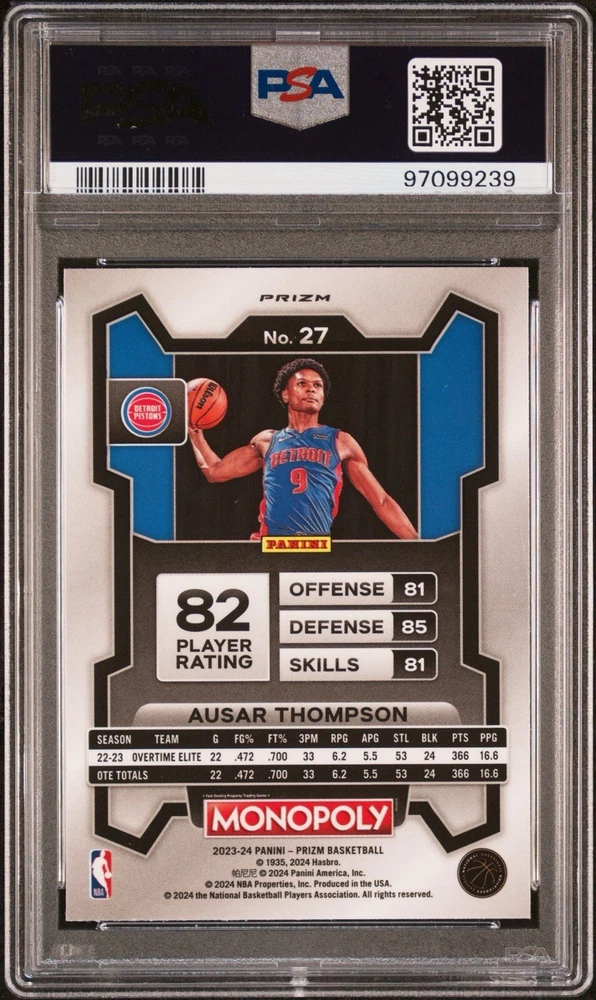 Ausar Thompson 2023-24 Panini Prizm Monopoly Purple Wave Rookie SP 27 RC Pistons