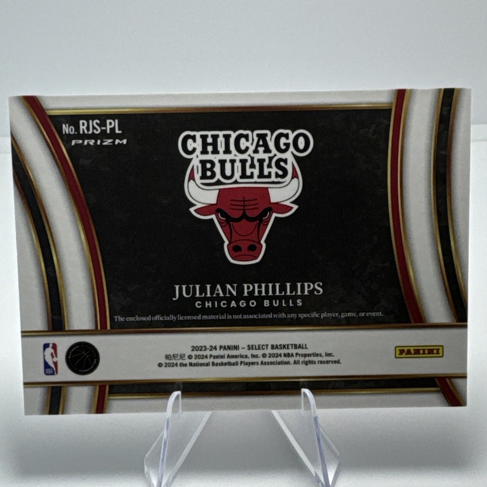 Team: Bulls Autographed: No Manufacturer: Panini Player/Athlete: Julian Phillips League: National Basketball Association (NBA) Parallel/Variety: Jumbo Patch Type: Sports Trading Card Set: 2023-24 Panini Select Card Name: Card Features: Chase, Checklist, Hologram, Memorabilia, Parallel/Variety, Short Print Sport: Basketball Year Manufactured: 2024 Card Number: RJS-PL Season: 2023-24