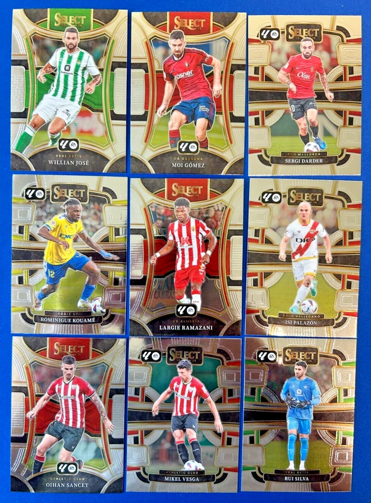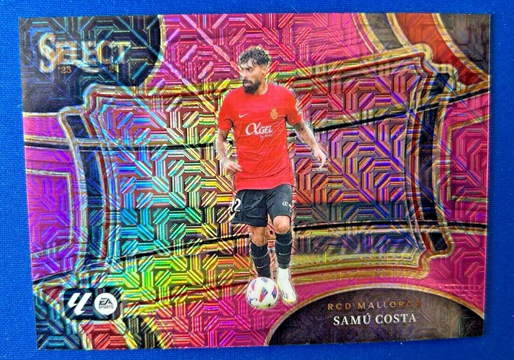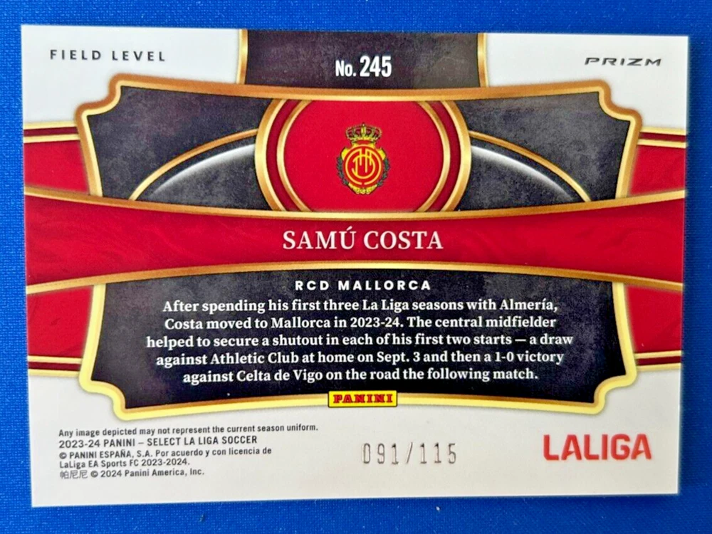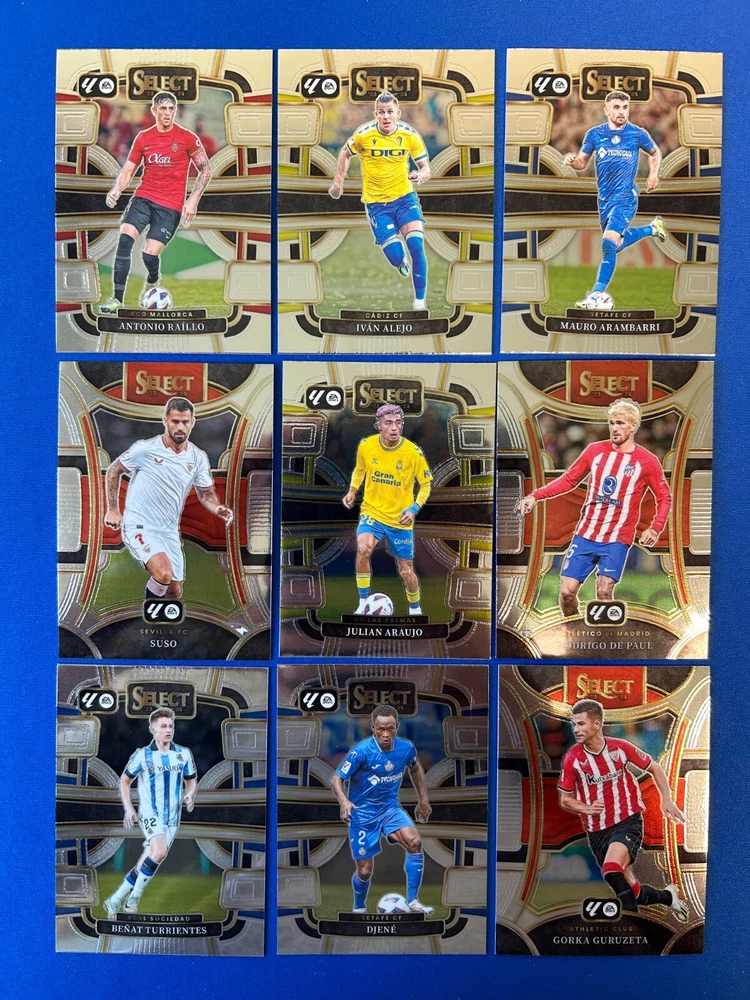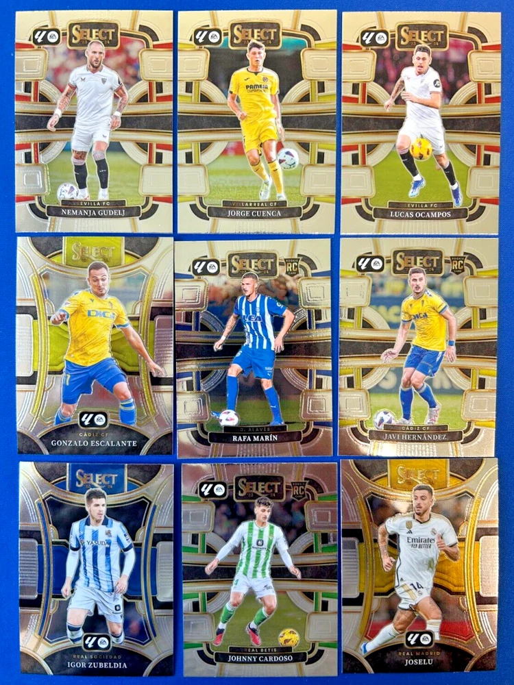 This 2023-24 Panini Select La Liga trading card features a multi-team/player design, including rookies Luka Modric, Mikel Oyarzabal, Robin Le Normand, Raphinha, Jorgen Strand Larsen, Giorgi Mamardashvili, Igor Zubeldia, Samu Costa, Ruben Garcia, Joao Felix, and Alejandro Balde. The card is numbered and has a purple prizm parallel/variety, making it a unique addition to any soccer fan's collection. The card is manufactured by Panini and is part of the 2023-24 Panini Select set. It is a sports trading card and is categorized under Trading Card Singles, Sports Trading Cards, and Sports Mem, Cards & Fan Shop. The card is in excellent shape, with a card condition of 400010. Get your hands on this amazing card and add it to your collection today!