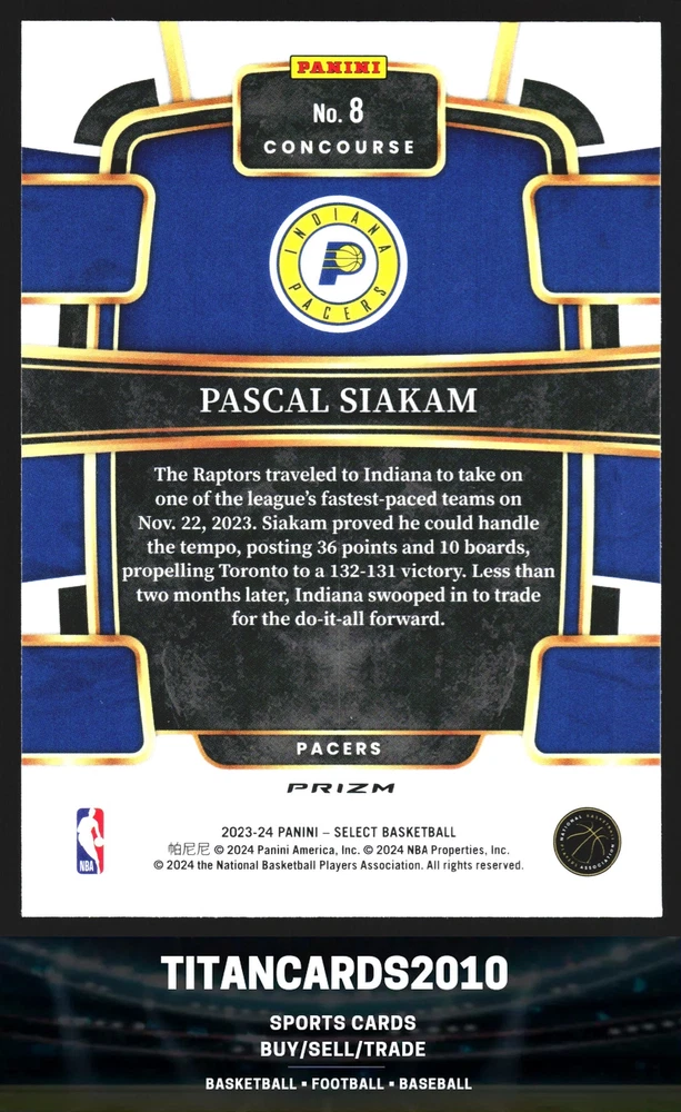 You will receive a Near Mint or Better, Pascal Siakam, 2023-24 Panini Select, Blue Cracked Ice Prizm, Blue Cracked Ice Prizm card NEW CARDS LISTED DAILY ORDERS SHIP NEXT DA Y (Weekends as mail service is available) VISIT OUR STORE FOR MORE DEALS! USE THE SEARCH ICON IN THE STORE TO FIND YOUR FAVORITE TEAMS & PLAYERS! Be sure to save us as sellers to be the first to be notified when new and exciting cards are posted! Please note, we are not professional graders, and the condition of the card you purchased is highly subjective. Please refer to the high quality scans of the card you are viewing, and determine the condition of the card for yourself. Feel free to reach out with questions! All cards are in EX-NM+ condition, unless stated otherwise Chrome cards from various brands might have minor light surface scratches, which is typical with these type of cards. Any major, deep scratches or major surface issues will be noted, if present. We take pride in the condition of all of our cards, including commons. Our promise to you, is that we will not sell a card we would not buy ourselves. Of course things slip by, however customer service is our #1 Priority, and we are always here for a message for ANY, and ALL issues. Thank you very much for stopping by, feel free to reach out! - Titan (Son) & Andy (Dad)