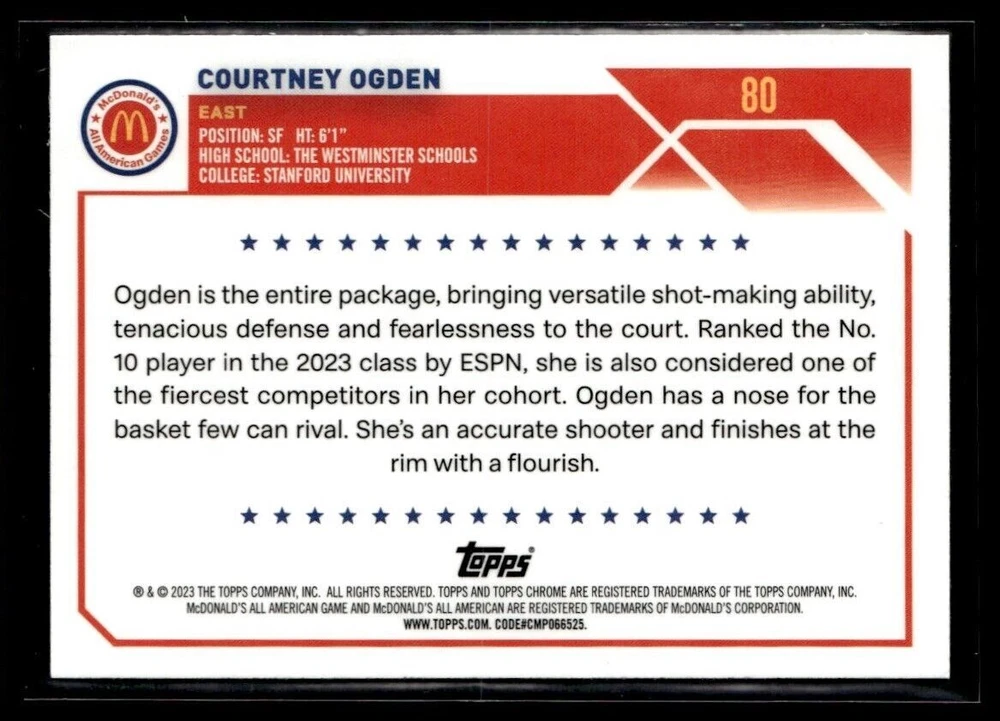 2023-24 TOPPS CHROME COURTNEY OGDEN MCDONALD'S ALL AMERICAN #80